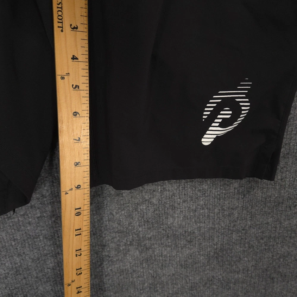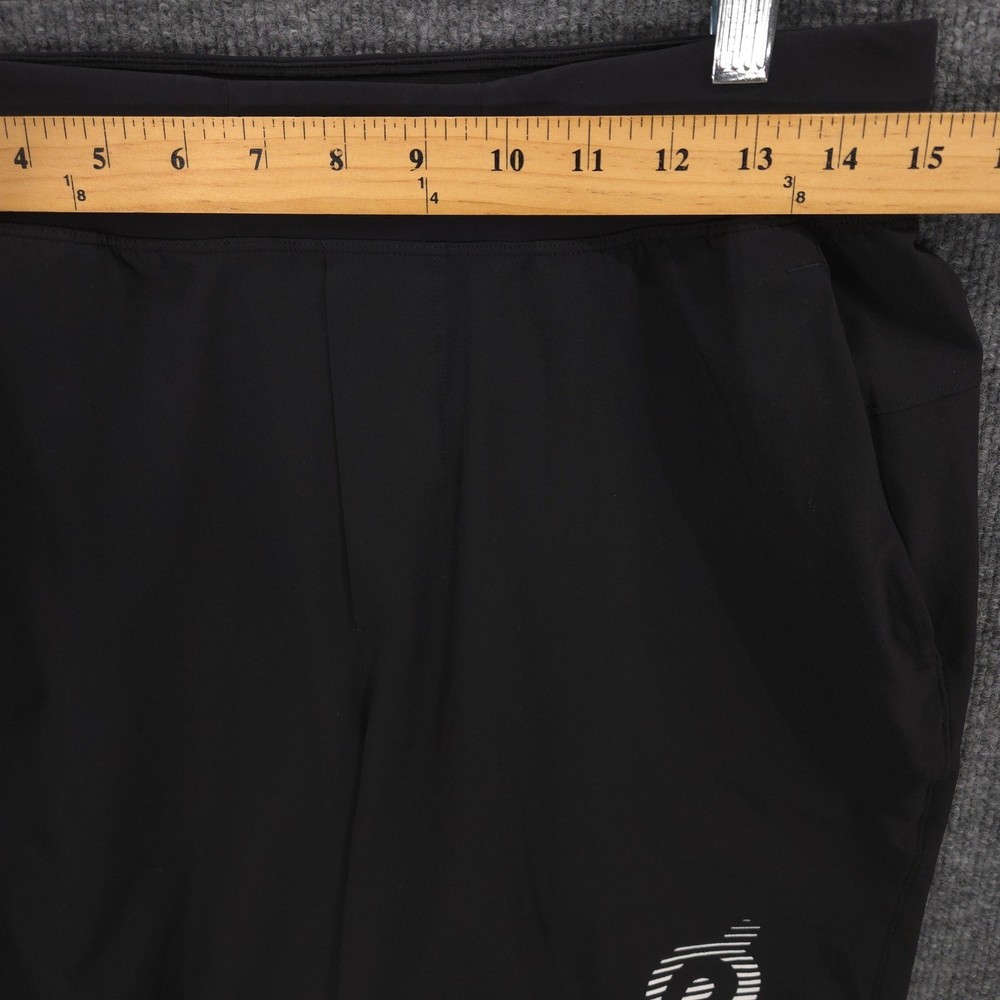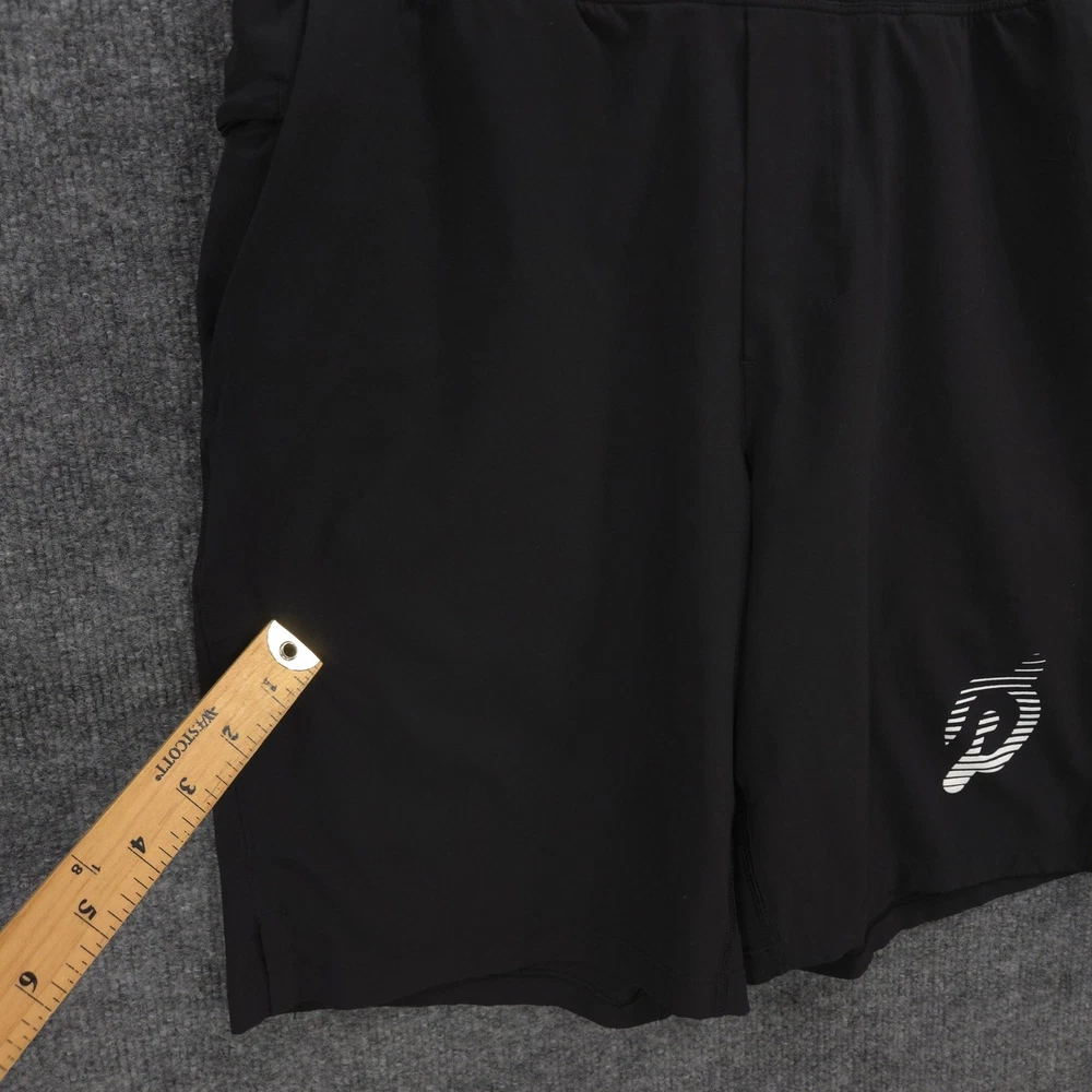 Lululemon THE Linerless 9" Shorts Mens M Black Peloton Logo Performance Gym Run Good Condition: Item shows some signs of wear, but overall, it is in good condition. No major stains. A few small fabric pulls / tears on front highlighted in last 2 photos. Happened to notice while listing this but the drawstrings are on the inside and not the outside. Waist Across: 15 inches Rise: 11 inches Inseam: 9 inches Sold as pictured. Thanks for looking! -Measurements are approximate, please measure and check your favorite items at home to estimate fit -100% authenticity guaranteed -Items typically ship next business day