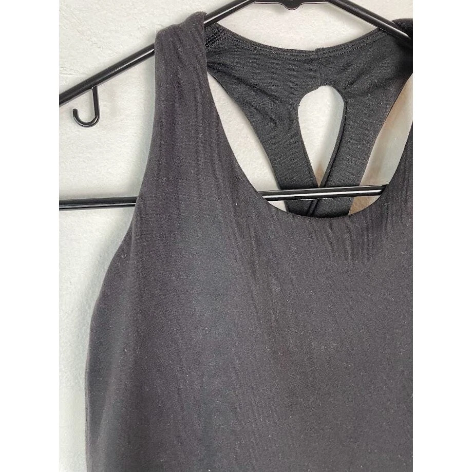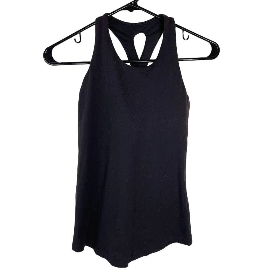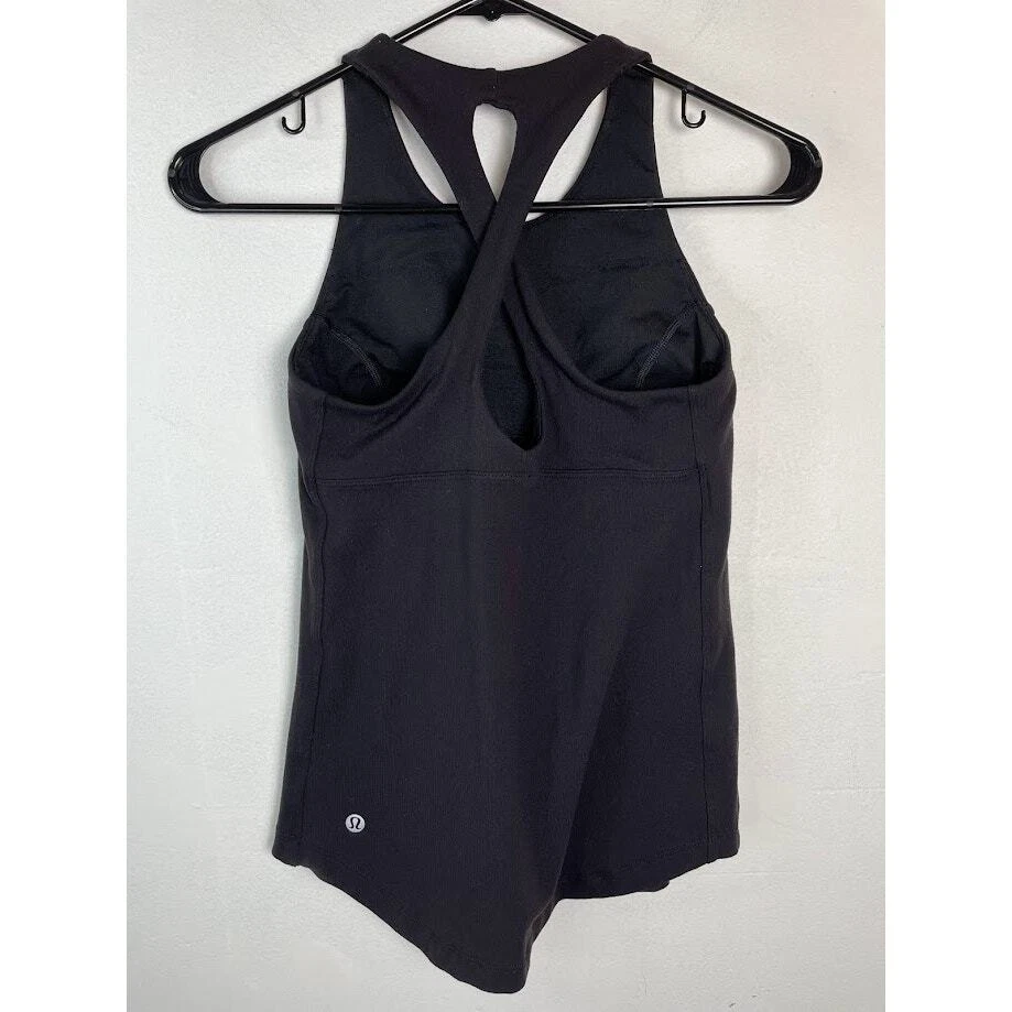 Lululemon Top Womens Black Sleeveless Tank Cross Strap Athletic Shirt Workout Size 4 Pit to Pit 13.5" Length 23" Good Condition has a spot on inside lining as shown in pictures but no other known flaws gym clothes, comfort,