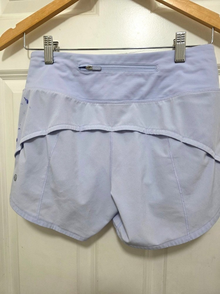 Crafted for active lifestyles, these shorts combine high-performance fabric with a comfortable fit. Ideal for workouts, they feature a secure zip pocket for essentials. • Soft, lightweight fabric • Zippered back pocket • Reflective Lululemon logo • Designed for athletic activities • Curved hem for mobility MEASUREMENTS waistband 13 top to bottom 12 CONDITIONS pre owned, Minor blue ink stains on side, good conditions. see photos for flaws details.
