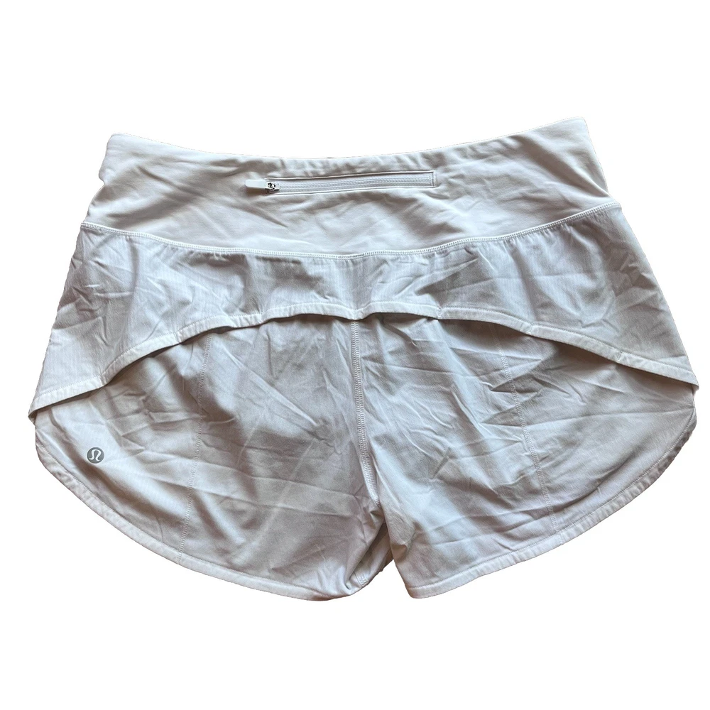 Good condition, has stains-see photo. message me any questions! These Women’s Lululemon Low Rise Speed Up Shorts in size 8 are perfect for athletic activities, especially running and jogging. The white solid color and 2.5-inch inseam give a clean and sporty look. Made from breathable nylon material with a drawstring closure, these shorts offer comfort and stretch. The easy care and machine washable fabric ensures low maintenance for convenience. Ideal for summer, fall, and spring seasons, these shorts by Lululemon are a versatile addition to any activewear collection.