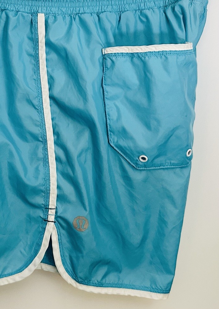These Lululemon shorts are a game-changer for workouts—super lightweight, breathable, and quick-drying, so you stay comfy even during intense sessions. The elastic waist with a drawstring ensures a secure fit, and the handy pockets are perfect for keys or cards. Love the teal blue color, and the vented design adds extra airflow. Easy to care for and stylish enough for the gym or running errands!