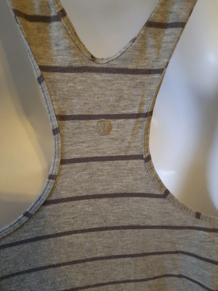 Lululemon Women's Size Small Grey Cayman Stripe Om Racerback Tank Top. Garment tag has been removed. Looks to be a size small. Minimal wear.