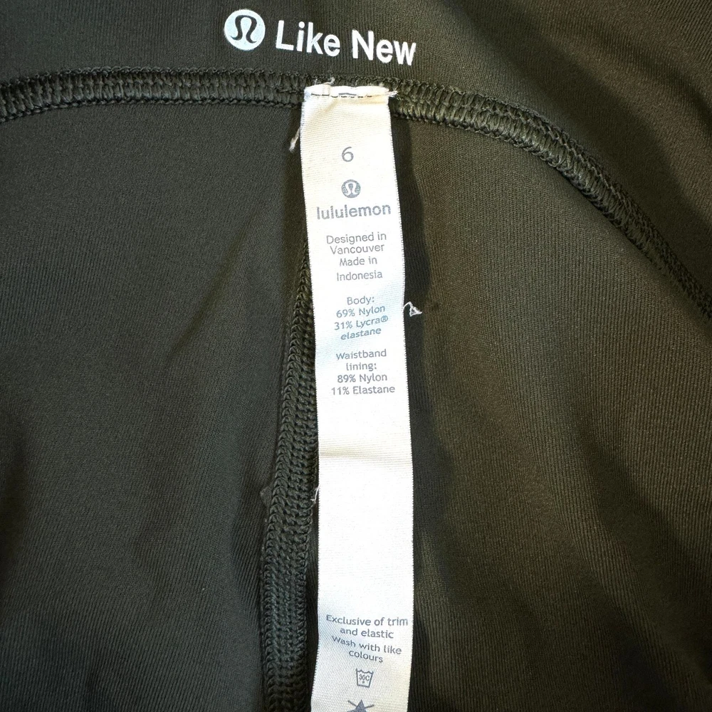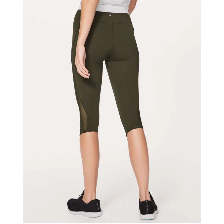 Style # W6ADDS. versatile crop has you covered from training to boot camp. The reinforced waistband lies flat so it won't dig in or slide down. Brand: Lululemon Size: 6 Measurements: Please see photos for approximate measurements. Condition: In very good pre-loved condition. Color: Olive Green Material: nylon, elastane Features: Mesh inserts at legs Back waistband pocket Drawcord: Customize the fit with the drawcord in the waistband High-rise: Keeps you feeling covered and secure Hugged sensation: Engineered to feel like a comfortable embrace throughout Breathability : Mesh fabric back provides ventilation Tags: active, activewear, athletic, gym, workout, fitness goals, athleisure, casual, yoga, pilates, outdoors, running, training Pre-owned clothing items are properly cleaned, washed, and/or steamed at high heat before listing. Model photo is meant to be representative of style and is not the actual item being purchased.