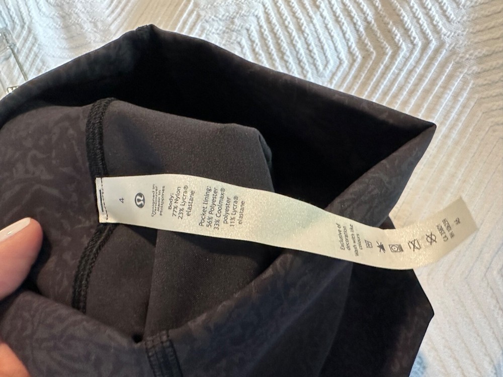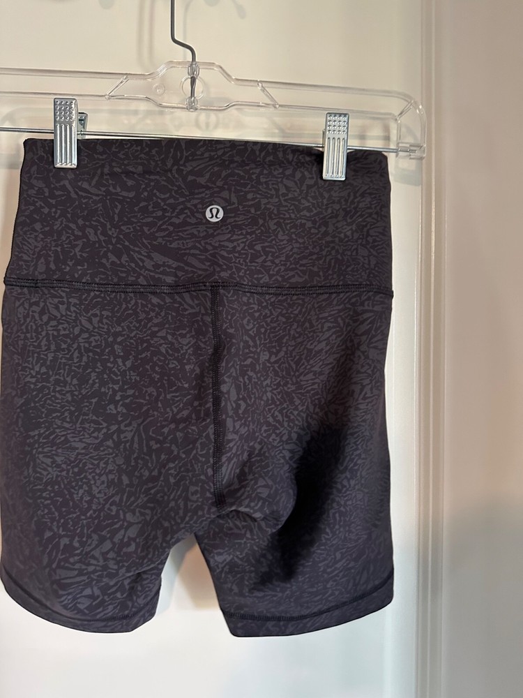 Lululemon black patterned wunder train shorts NWOT size 4. Excellent condition. Fast shipping.