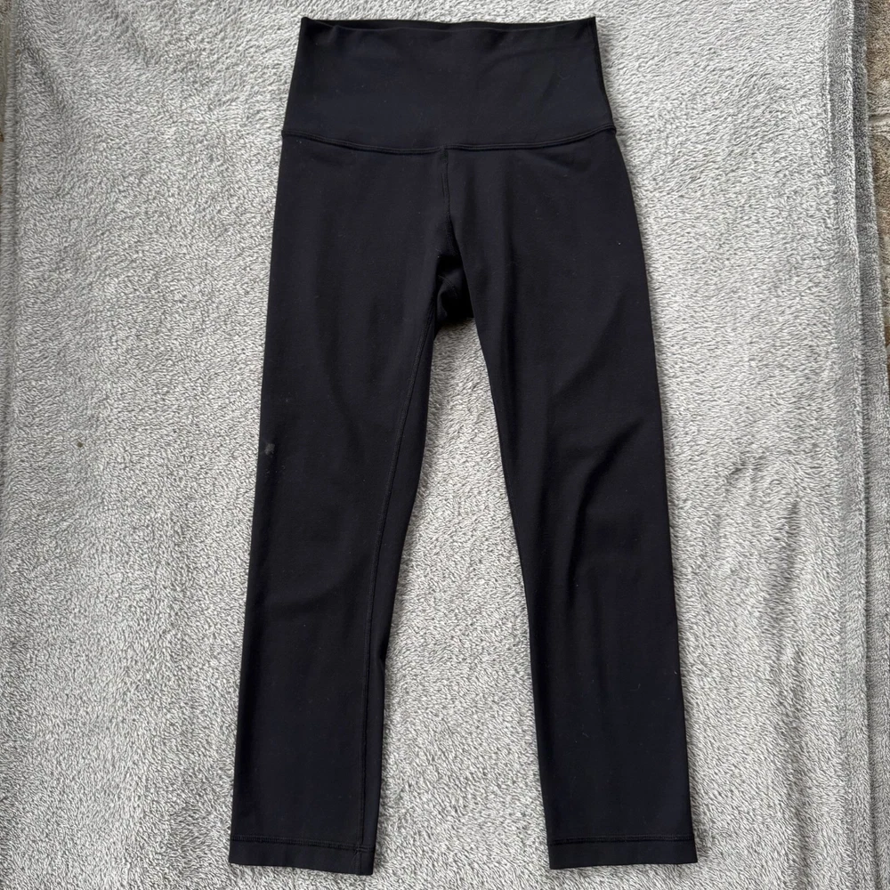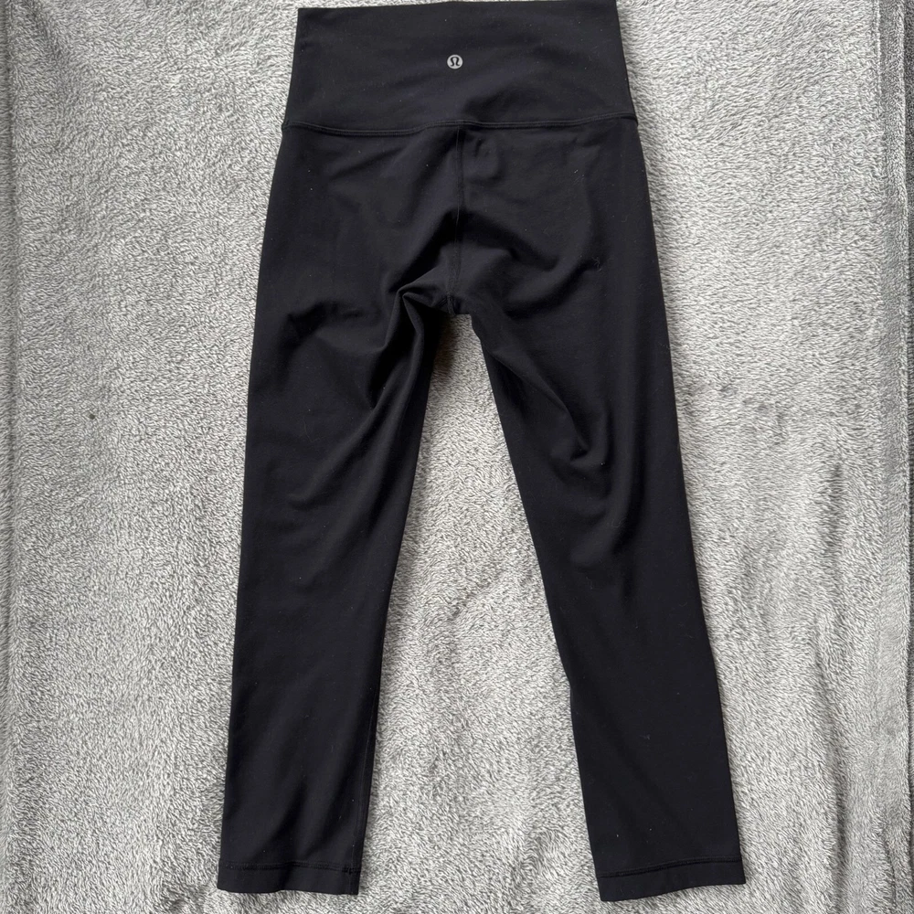 Lululemon Wunder Under Crop High Rise Leggings Gently worn. Minor blemish on right leg as shown in picture. Size - 4 Color - Black Inseam - 21 inches Style Number - W6AG0S Material - Full on Luon Original price - $88