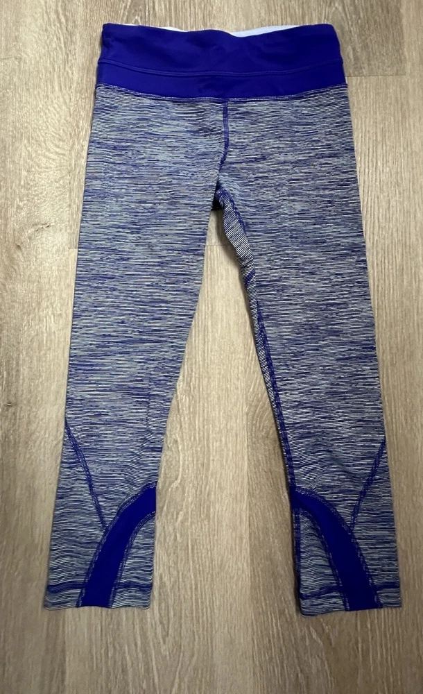 Lululemon|Inspire Crop|Purple/White Stripe|SZ 4 Preloved in like new condition. No flaws. Please see pictures for more details and measurements.