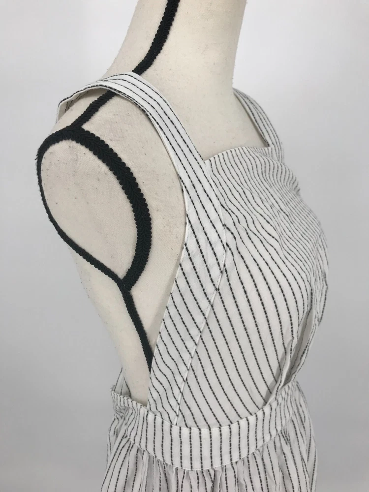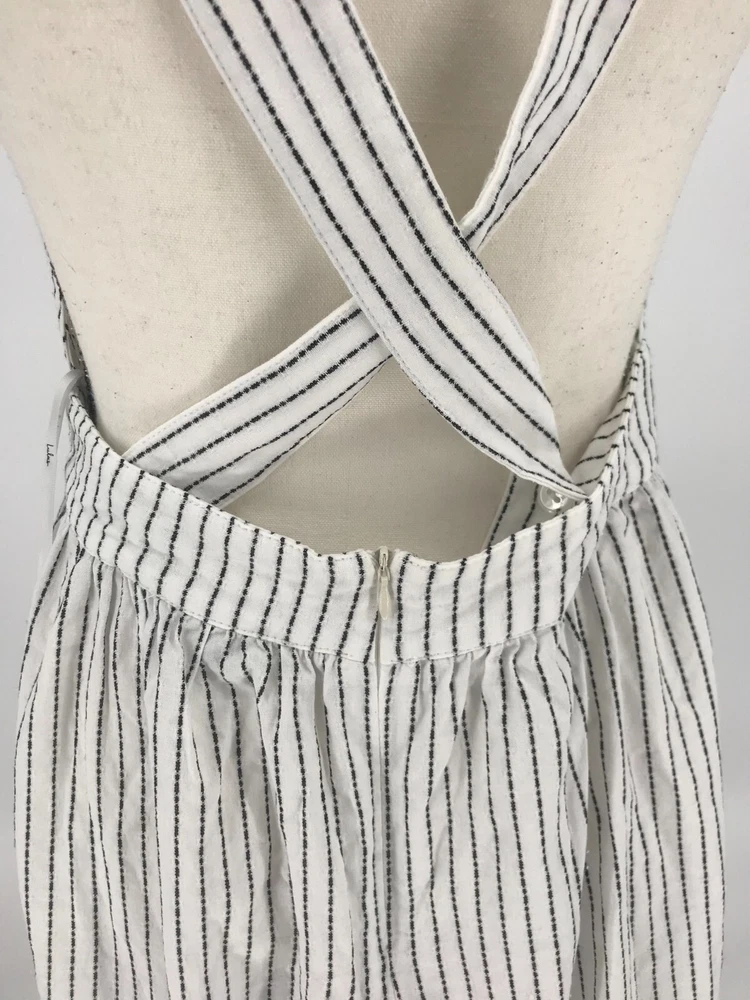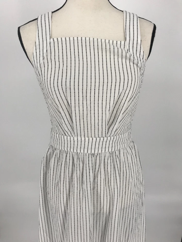 Description: Product: Lulus Womens Apron Dress | Size Small | Black/White Stripe | Crossback Open Back Description: Embrace effortless style with this chic Lulus Apron Dress in a classic black and white stripe pattern. Designed for a flattering fit in womens size small, this dress features a trendy apron-style front with a crossback design that leads to an open back, adding a playful yet sophisticated touch to your look. The black and white stripe pattern gives it a timeless appeal, while the open back and crossback straps make it a standout piece thats perfect for warm-weather outings, casual gatherings, or even a day at the beach. The apron-style front adds a touch of vintage charm, while the open back design keeps it modern and fresh. Pair this versatile dress with sandals for a laid-back look or dress it up with heels and accessories for a more polished ensemble. Whether youre headed to brunch, a summer party, or just enjoying a day out, this Lulus Apron Dress is sure to turn heads. Key Features: * Brand: Lulus * Style: Apron Dress with Crossback and Open Back * Color: Black/White Stripe * Size: Small (Womens) * Fit: Flattering and comfortable * Design: Apron-style front, crossback straps, open back * Material: Lightweight, breathable fabric * Occasion: Ideal for casual outings, summer parties, and beach days * Condition: No tag.Never Worn