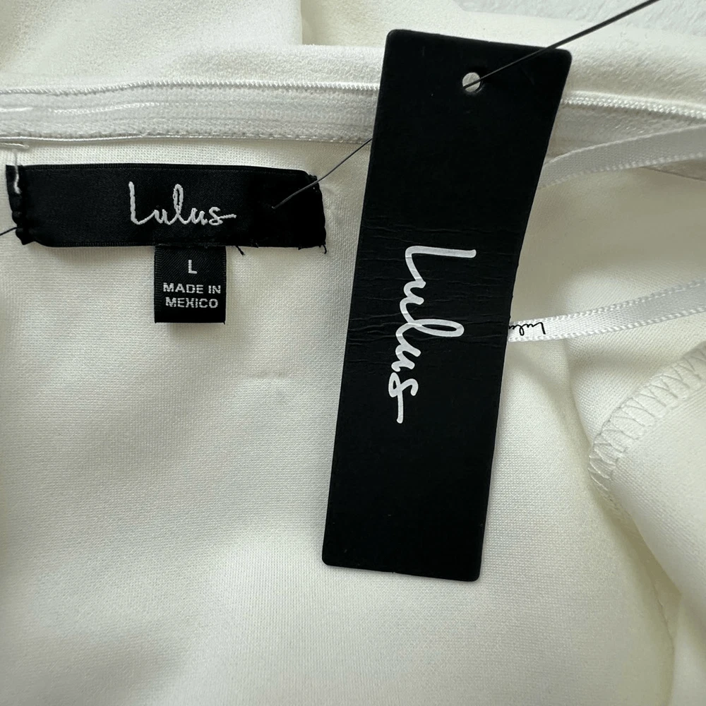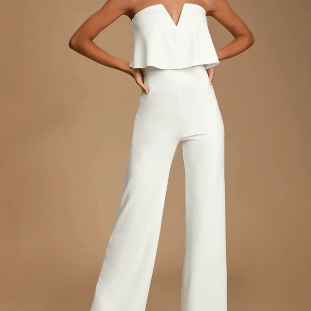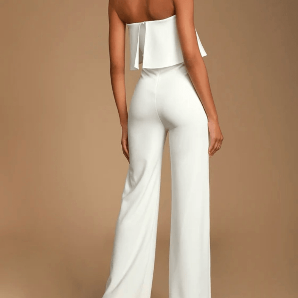 Lulus Womens L Power Of Love White Strapless Jumpsuit Coastal Bride Bachelorette Size L- See photos for approximate measurements New with tags Ships fast Ships from a smoke free pet friendly home