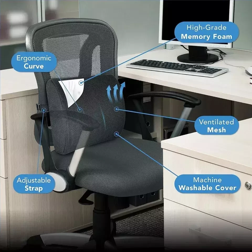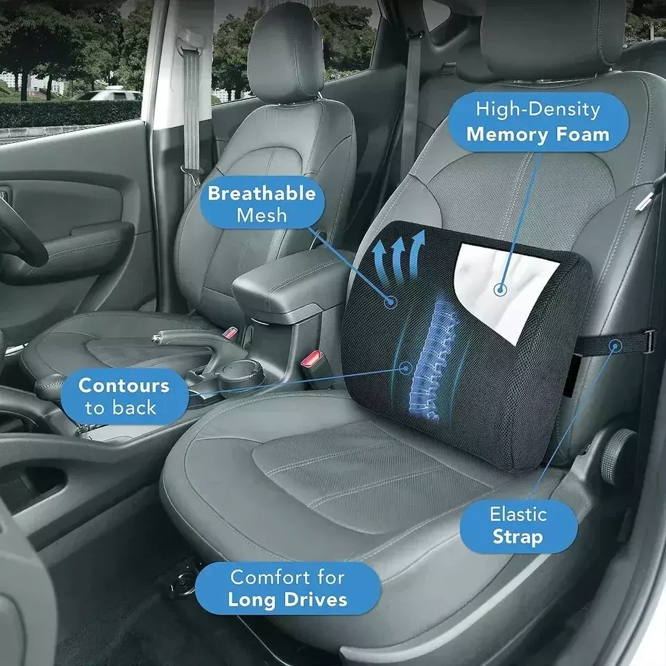 Lumbar Support Pillow For Chair Car Seat Memory Foam Adjustable Strap Brand USA