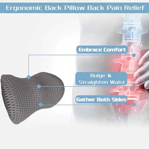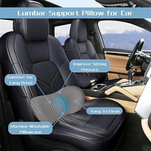 Lumbar Support Pillow for Car with Eye Mask, Breathable Memory Foam Lumbar