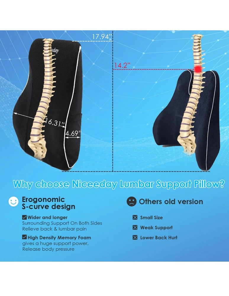 Lumbar Support Pillow for Office Chair Car Back Support Pillow, Memory Foam Gami