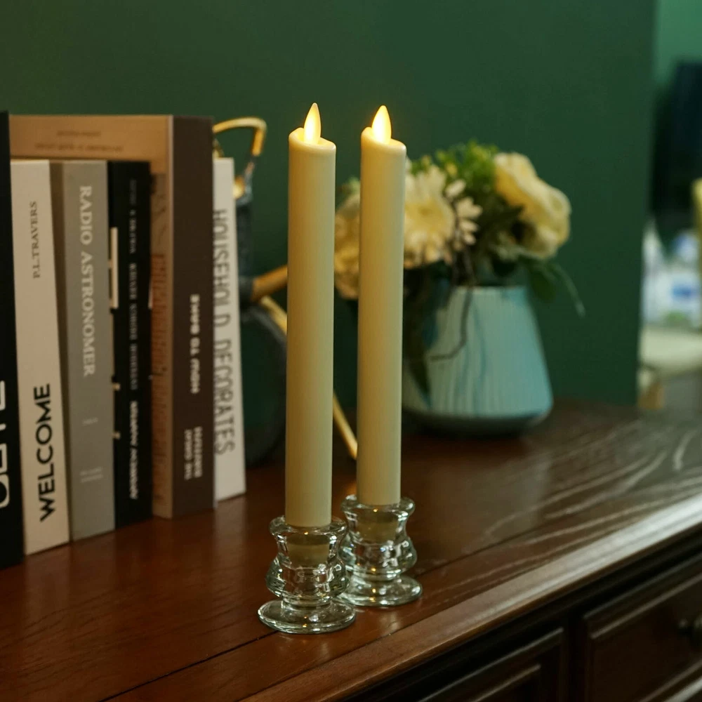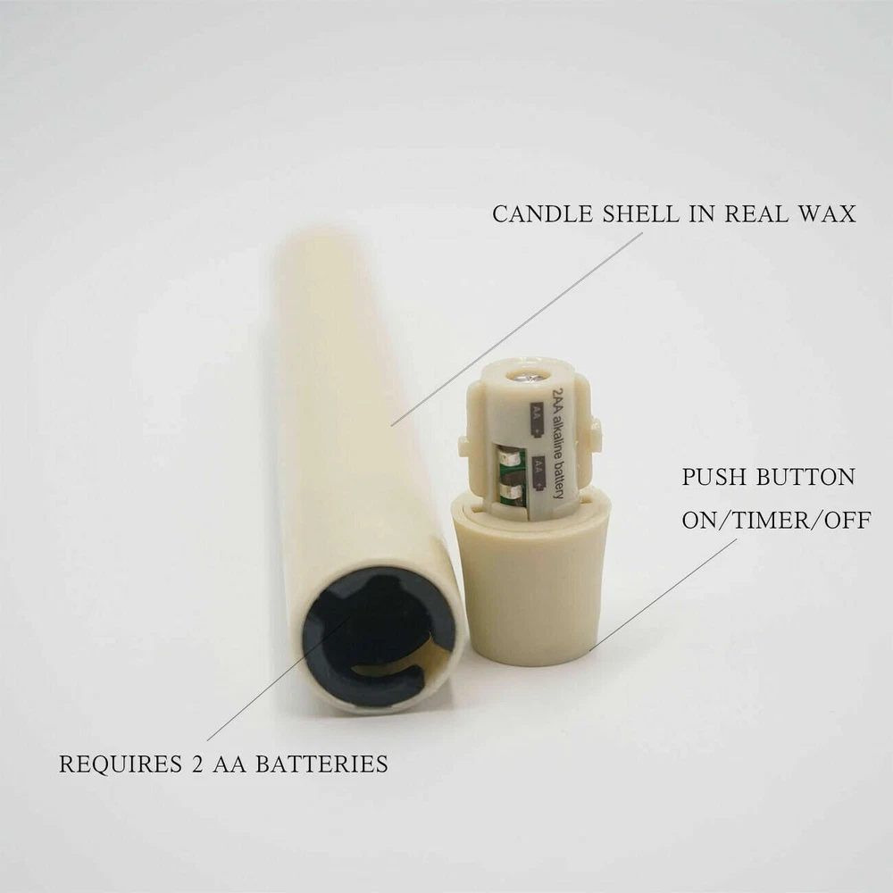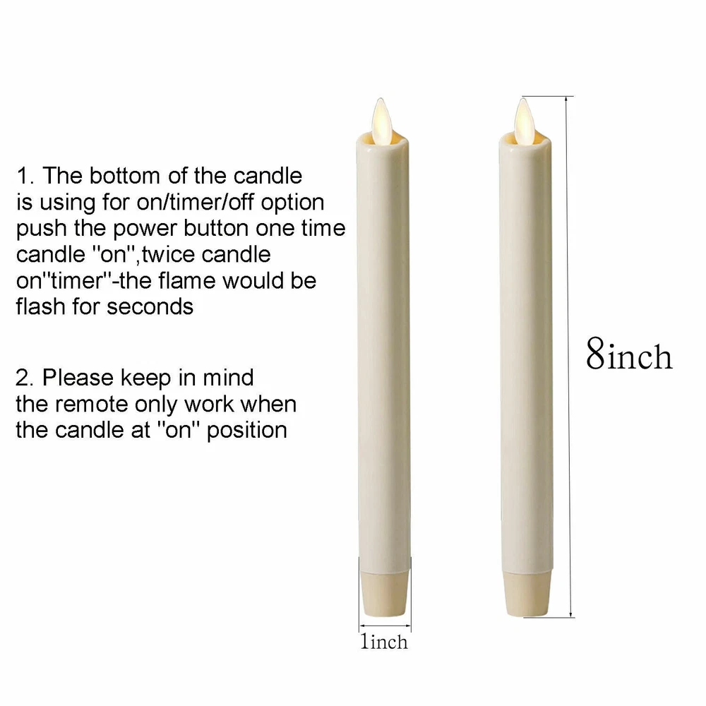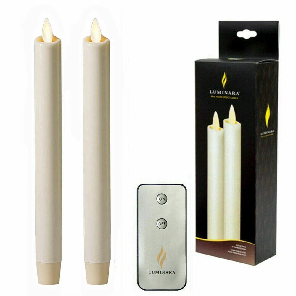 Luminara Flameless Taper Candles Set of 2 LED Moving Wick Wax Ivory 8" Beautiful Moving Flame Candles. This type of taper candles provide the one of most realistic looking flameless candles on the market today using real flame-effect technology. With Timer and Remote Function. The five-hour timer automatically turns the candles off and turns it on again. or you can use remote control anytime. (remote only have turn on and off function. and only when the candle is at turn-on condition, remote is useful.) Real Wax Shell. The wax shell is made of unscented, no drip, 100 percent wax and is for indoor or covered outdoor use. Safety is the most important thing. Flameless taper candles are a safe alternative to real wax candles without the mess. Battery operated taper candles candles are perfect for home, weddings, decorating, holiday displays and more. These taper candles make decorating with a flameless candle set fun and safe. Additional Features: Measures 8" tall with 1" base. Fits in most taper candle holders. Lighting Time. About 150 hours run time,then you just need to change the batteries, candle will became new one. 5 hours on and 19 hours off timer and remote control included with candle. Made of real wax with an ivory, frosted finish. Unscented. For indoor or covered outdoor use. Packing content: 2 x Taper Candles. 1 x Remote. 1 x User Manual Note: * 1.If you plan to use your own candle holder, please pay attention to the candle base size.The candle base is 1 inch. Candle can stand independently after batteries installed. * 2.The bottom button of the candle is used for lighting--timer--remote function conversion. sometimes you should rotate the candel base a little hard in order to let base connect the battery well. * 3.The remote only work when the candle are at "on " position,please pay attention Payment Delivery details Terms of sales Feedback Contact us Payment We accept Paypal,G Pay,VISA,MasterCard,and other payment that eaby accept Delivery details 1, Item will shipping within 2 working days after get payment 2, We provide the Tracking No. for 100% of our items. ★ Please check over your shipping address,if the package returned by incorrect address,we will charge 10% fees of the item total price,hope you can understanding Terms of sales 1. We strive to ensure 100% satisfaction for each and every one of our customers. That's why inspect 100% our product before shipment and offer 1 month return for the defects caused by our side only. 2. Please note that all the returns must be authorized by our Customer Service Team. Order without a Return Merchandise Authorization (RMA) will not be accepted. 3. The seller will be responsible for the cost of return shipping in most case, like the defect of the item, etc. Please contact us if you have any questions when you get the package Please contact us before you return the item, we will solve your problem asap 4. Please note that items must be completely intact, with all original parts, accessories and packaging, in order to be eligible for return or replacement. Feedback 1. Our goal is to make sure that you are a happy customer and have pleasant shopping with us. If you are satisfied with our transaction, please take a moment to leave Positive Feedback 2. Please know that your positive review, feedback and 5 stars rating for each item on eBay are extremely important to us. The five-star rating system that eBay instituted is also important to the continued success of our business. 3. Please do not simply leave a neutral / negative feedback ,review or open any return case if you had a issue with the item. If you are not satisfied with your purchase in any way, please contact us and give us the opportunity to resolve any problem and let us know how we can earn your satisfaction. we will try our best to resolve the issues. We Promise we can make you happy if you give us a fair chance. Contact us Please contact us at any time for any questions or information you may need. We will respond you asap except the Weekend or National Holidays