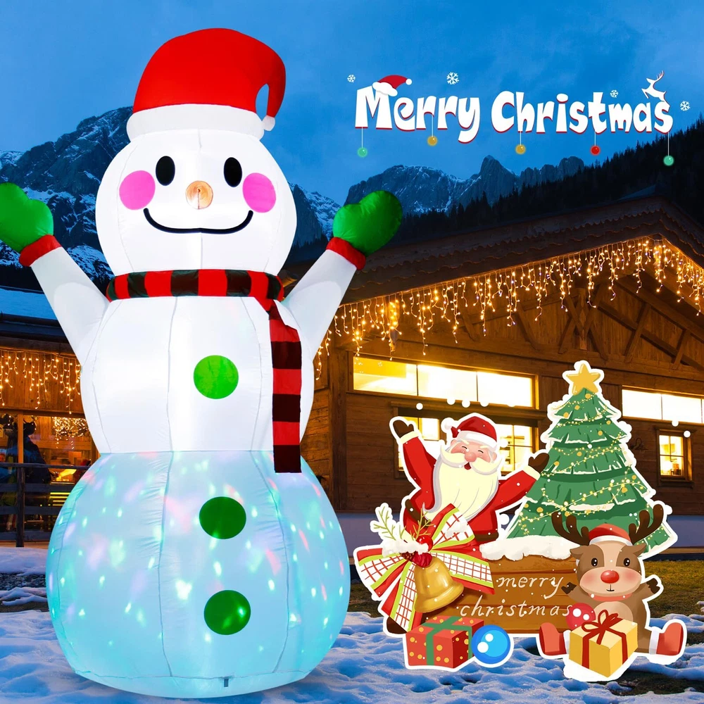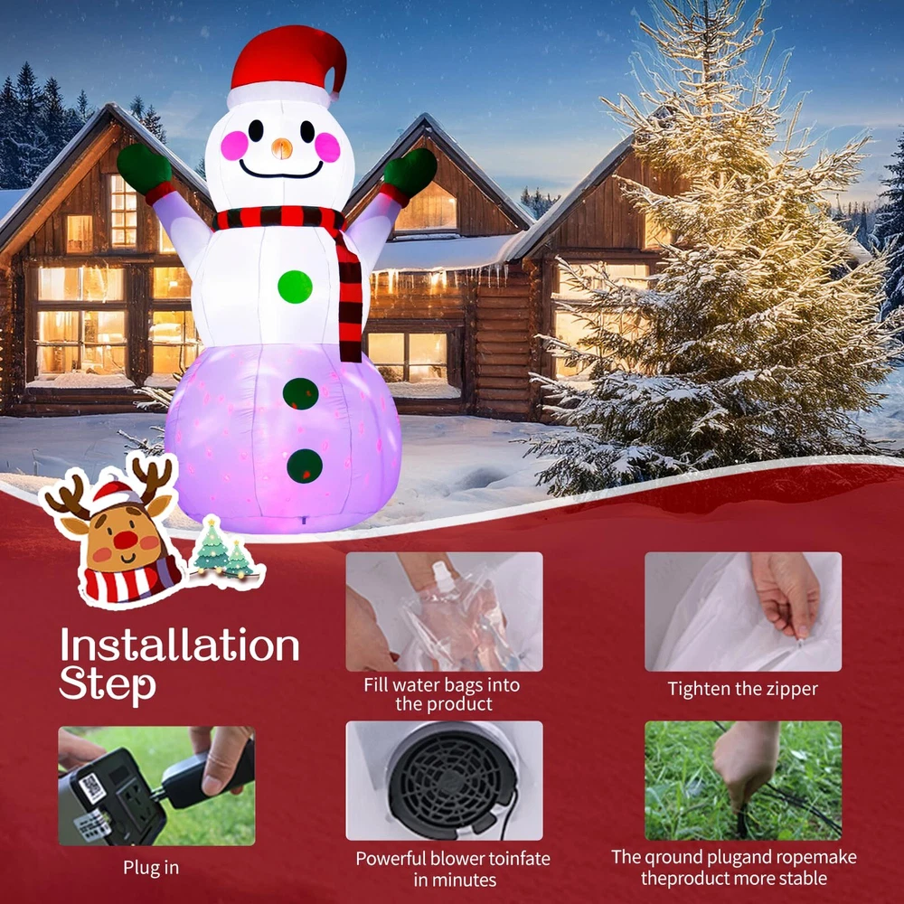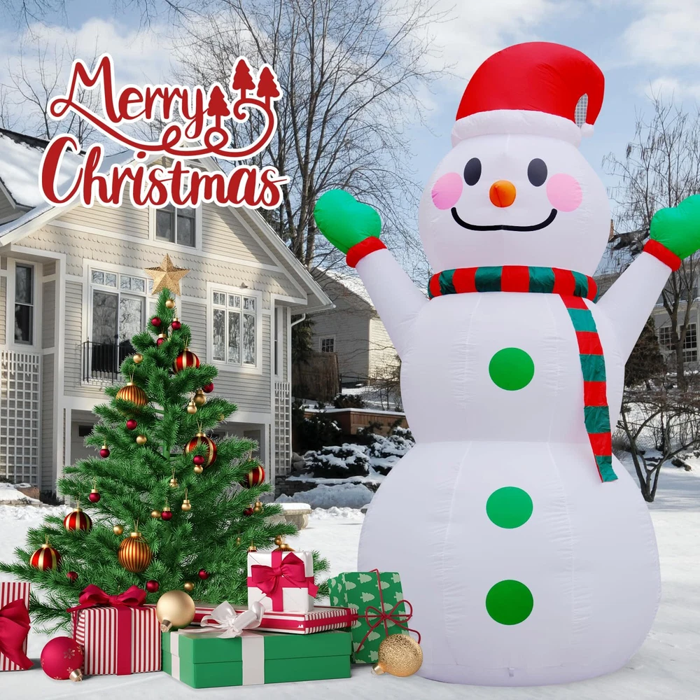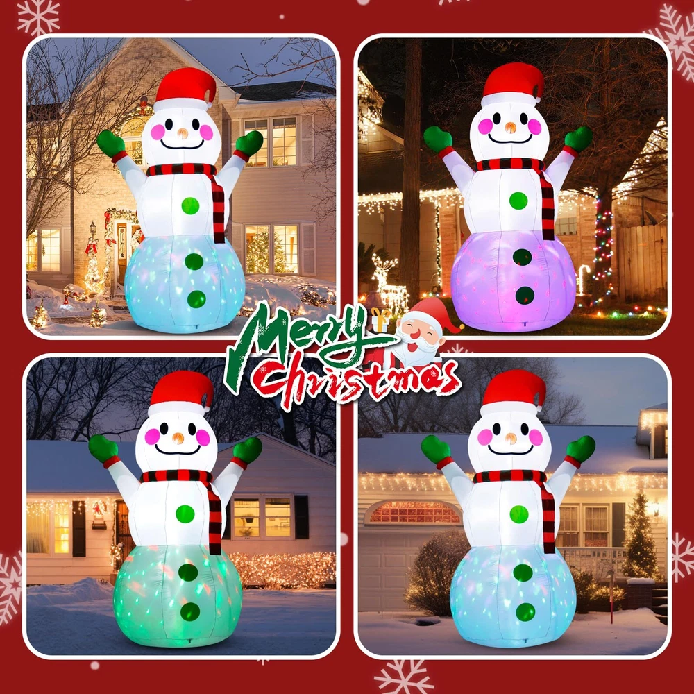 【10FT Giant Christmas Inflatable Snowman】A cute giant snowman with a smile on his face, a Santa hat on his head, and his hands in a hugging gesture. The snowman wants to celebrate Christmas with you! The rotating LED lights at the bottom make him look more beautiful at night! Whether it is indoors or outdoors, day or night, it can always give you a beautiful and unforgettable Christmas holiday! 【A Colorful And Eye-catching Decoration】 The Colorful LED lights inside will make it glow brightly at night and create a festive atmosphere.This Giant inflatable Snowman is 10FT Tall, making it an impressive backdrop for your photos with your family and friends. You can capture the memorable moments of Christmas with this inflatable. 【High-Quality and Durable Material】This inflatable is made of thick and waterproof Material that can resist rips and tears. The stitching is excellent and the blower is powerful, ensuring that the inflatable stays inflated and stable. You can use it many times without worrying about fading or damage. 【Easy to Set Up and Store】 You can inflate this inflatable in minutes with the built-in water bags, stakes, and ropes that secure it to the ground. The extended cord allows you to plug it into any standard outlet and power it on. When not in use, you can deflate it easily and fold it into a small size for convenient storage. 【Contact us Anytime】 We Offer You Best Customer Service. If You Have Any Questions, Please Feel Free to Message Us Through “Contact Sellers”. Our service team would provide premium service to help solve any of the problems."