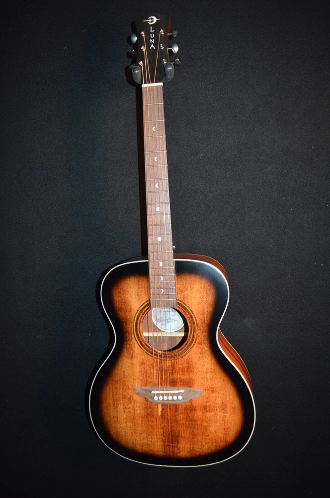 Shipping Rate Is To Lower 48 U.S. Only Luna Art Vintage Folk Acoustic Guitar b-Stock-Brand New! • Solid Spruce Top/Mah..gany Body • 25-1/2" Scale • 1-11/16" Nut • Set C Neck • Pearl Moon Phase Inlays • Vintage Open Gear Tuners • Satin Distressed Vintage Brownburst Finish List Price $499.00 Our Price $214.95 We have a really cool Luna Art Vintage Folk acoustic guitar available. This is a brand new b-Stock guitar with a very minimal cosmetic Blemish. There is a lite spot in the finish on the top near the bridge and a slight lite spot on the edge of the sound hole that I tried to show in the pictures. This looks like it would be something deeper than the finish but it is only a lite area in the finish and it is perfectly smooth. T his guitar is excellent, has really great tone for a guitar in this price range! The neck feels and plays good and has good action. Pictures are of the Actual Guitar Check our other great deals in our EBay Store and auctions. Full Factory Warranty. Who Are We? We are 55+ year players who love guitars and great deals. We want you to love the instruments you get from us! We setup and go over each guitar to play and feel great before it is shipped to you. Our store is Music City , an authorized Top Ten Dean Dealer based in Hudson, FL. and also the exclusive outlet for Dean Closeouts, Discontinued and Factory Blem guitars . We are located within a few miles of the Dean Corporate Headquarters and World Wide Distribution Center and enjoy a great working relationship with the folks there. We are excited about what we do! We have a great opportunity to get great guitars into the hands of guitar lovers everywhere....And we will save you a significant amount of money in the process! Music City Guitar Outlet, Hudson, FL x5123