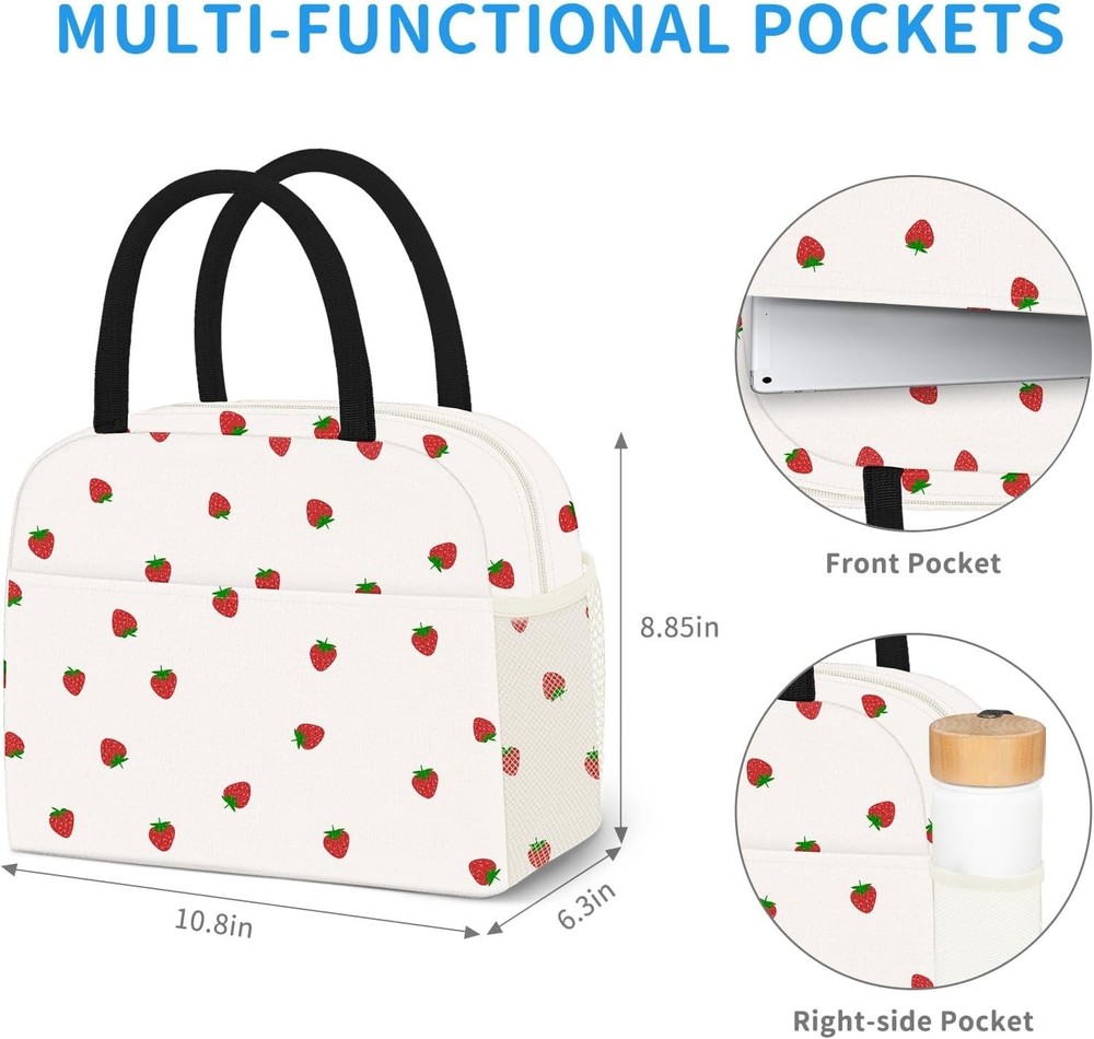 Lunch Bag Lunch Box for Women Men,Cute Strawberry lunchbag Reusable Insulated Lu eaning. Keeps food cool or warm for 3-4 hours. Leakproof, lightweight, and features a soft handle for convenience LARGE CAPACITY and MULTI COMPARTMENTS : Dimensions: 10.6 × 6.3 × 8.67 inches, 0.49 lb. Lightweight and portable, this lunch bag offers ample space for lunch boxes, fruit, snacks, and drinks. Features a front pocket for personal items, and side pockets for water bottles, tissues, and more HIGH DURABILITY : Crafted from premium frosted oxford cloth, this cooler bag features precision stitching, leak-proof design, and thickened anti-collision layers. It’s splash-resistant, easy to clean, and provides long-lasting insulation. Upgraded, thickened handles and reinforced metal zippers ensure maximum durability WIDELY USED and EASY TO CARRY : This versatile lunch bag functions as a reusable lunch bag, grocery bag, or shopping b Shipping We offer FREE shipping on all orders! We ship within Three business days of payment, usually sooner. We use a selection of shipping services such as UPS, FedEx, USPS etc. We only ship to the lower 48 states, no APO/FPO addresses or PO Boxes allowed. Local pickups and combined shipping options are not provided at this time. Return You can return a product for up to 30 days from the date you purchased it. Any product you return must be in the same condition you received it and in the original packaging. Please keep the receipt. Customer satisfaction is very important to us. If you have any problem with your order, please contact us and we will do our best to make you satisfied. Contact Us If you have any queries, please contact us via ebay. We usually respond within 24 hours on weekdays. Please visit our eBay store to check out other items for sale! Thank you for shopping at our store.
