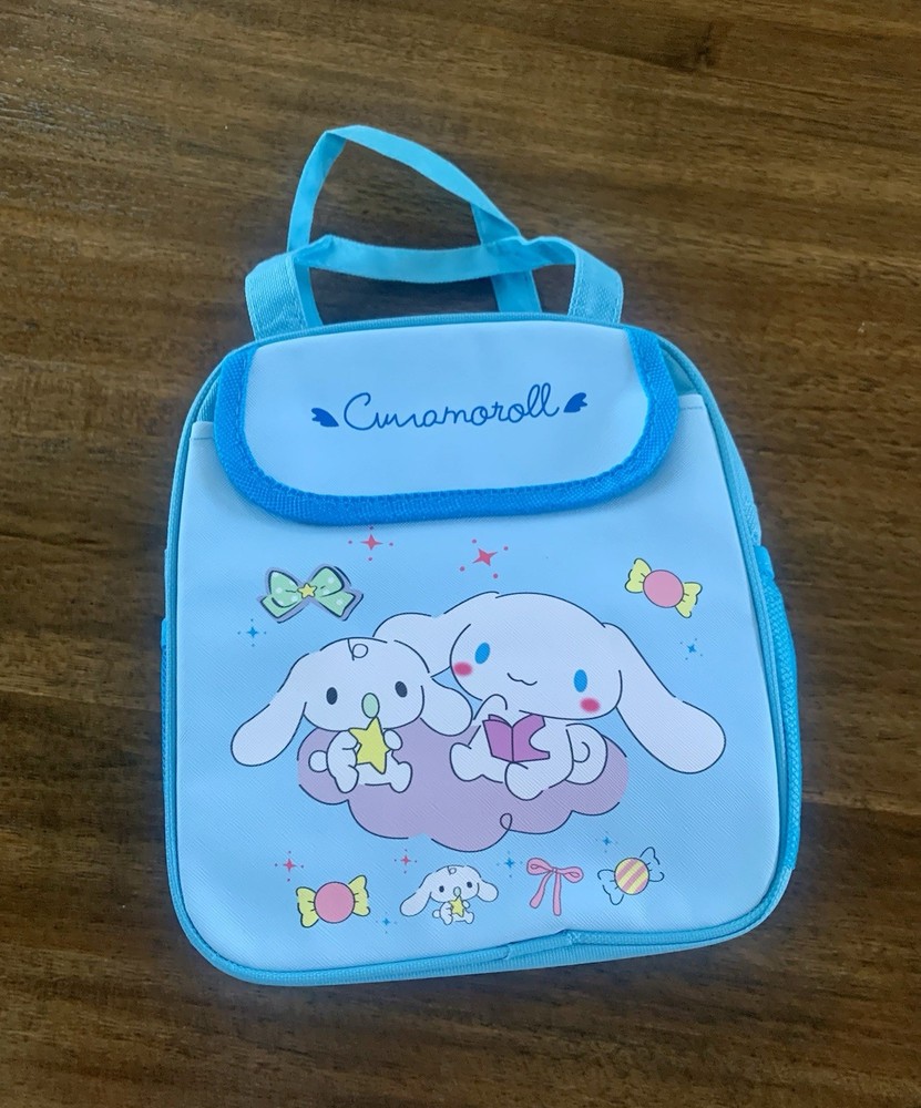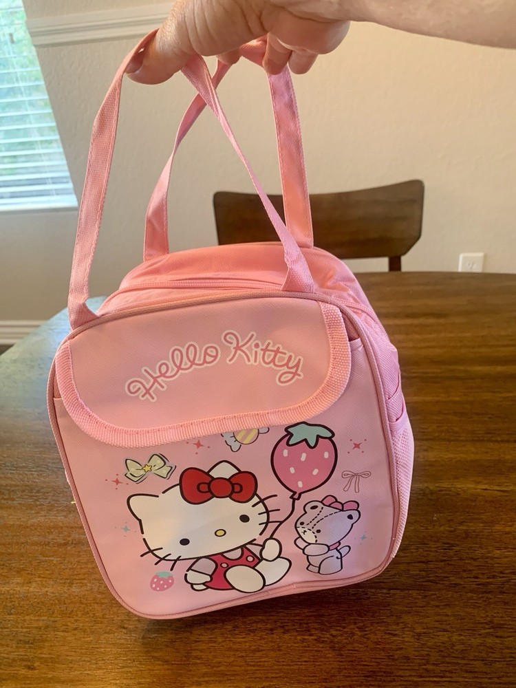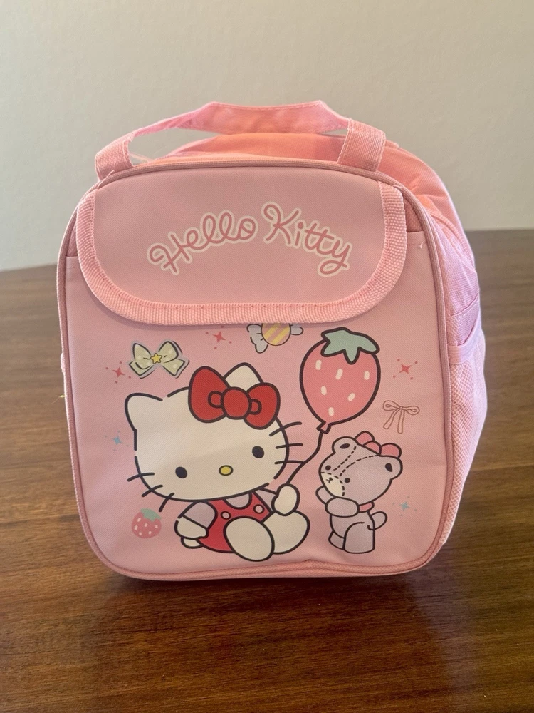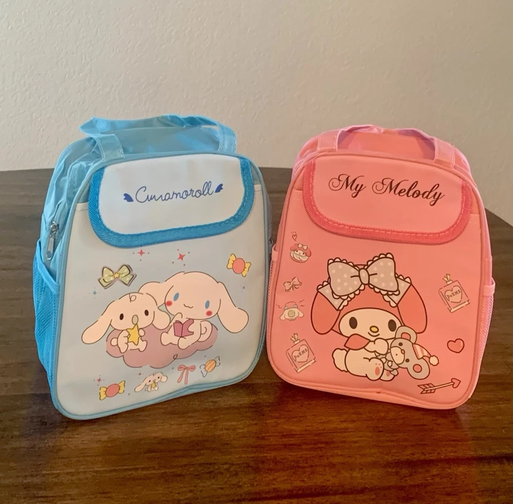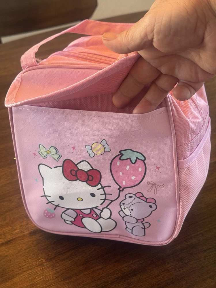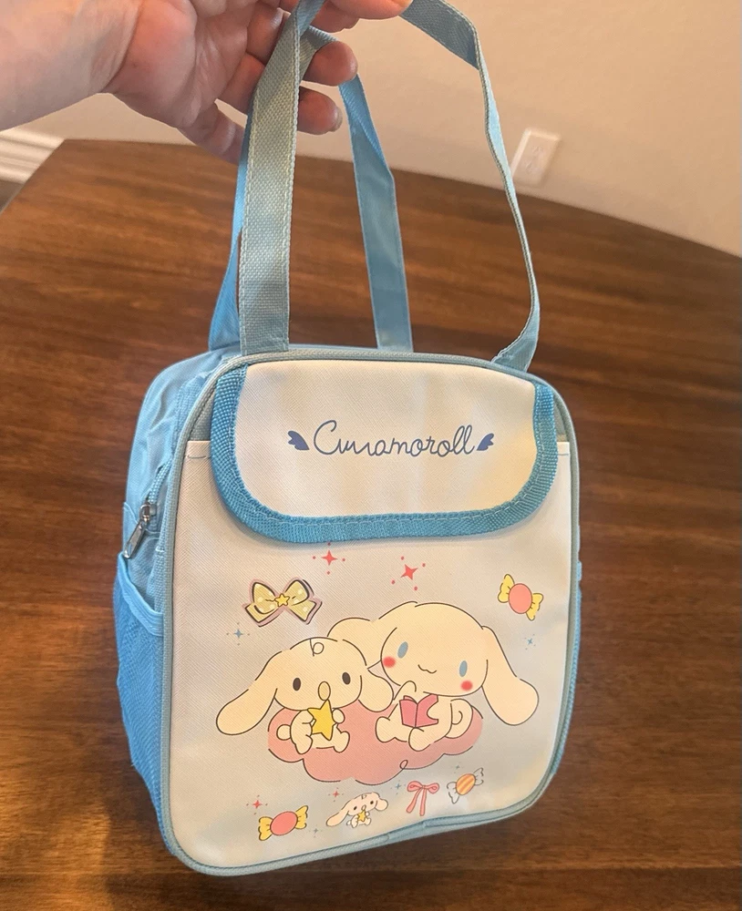 The Lunch Bag for Kids featuring Hello Kitty anime characters is an insulated lunch box, The lunch bag is designed for kids and showcases a mixed color scheme with a Hello Kitty theme, making it a fun and personalized option for carrying meals to school or on-the-go activities. Buyer: Let me know which Character you would like to purchase Hello Kitty My Melody Kuromi Cinnamorroll