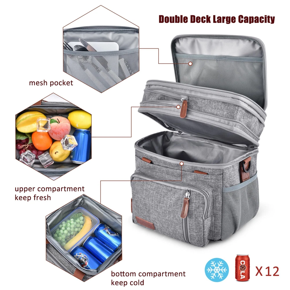 Lunch Bag for Women Men Double Deck Lunch Box - Leakproof Insulated Soft Larg...