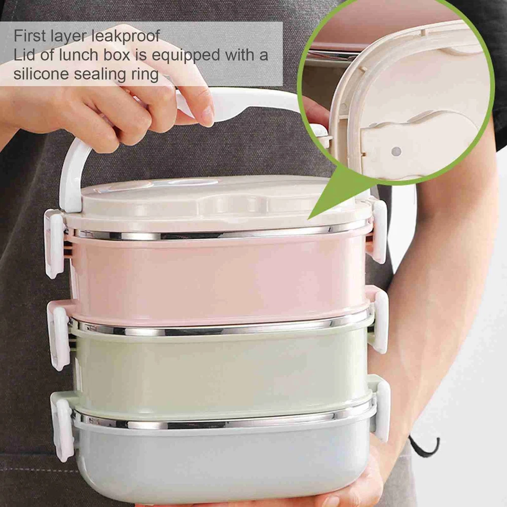 Feature: 1. The inner layer using premium stainless steel material, mirror‑polished and easy to clean. 2. The outer layer uses food grade PP material, high temperature resistant, safe and hygienic. 3. double‑curved handle is small and portable, suitable for home, work, travel, and school. 4. The air‑permeable sealing valve can eliminate air, so that the food in the box is better sealed, and convenient to open the lid. 5. Safety lock design, adopts PP plastic, which can be fastened with one click to prevent leakage. 6. The built‑in sealing rubber improves the sealing performance of the lunch box and keeps heat preservation lasting. Specification: Item Type: Lunch Box Material: 304 Stainless Steel+PP Application: Students, Workers, Homes, etc. Product Features: 304 stainless steel, hygienic and healthy, non-flavor, thickened material, upgraded buckle. Main function: anti-scalding heat insulation, heat preservation for about 2 hours Holding Time: The product is an ordinary lunch box, not a vacuum insulated lunch box. The holding time is related to the temperature of the food and the ambient temperature. Package List: 1 x Lunch Box Note: 1.Please allow 0‑1 inch error due to manual measurement. Thanks for your understanding. 2.Monitors are not calibrated same, item color displayed in photos may be showing slightly different from the real object. Please take the real one as standard.