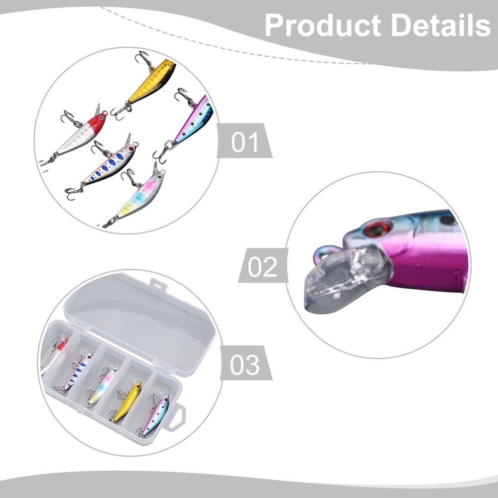 Product Description Features: * More powerful, , suitable for both fresh water and sea water. * The design of simulated fish skin enhances its ability to attract big fish. * Reinforced double loops increase resistance to pulls. * 3D simulated eyes, big, bright, more tempting and more reflective. * Suitable for army fish, horsemouth, trout, milkfish. Specification: Material: Metal+Plastic. Color: as the picture shows. QTY: 5pcs/bag. length:4.5cm. weight:2.5g. Package Includes: 5pcs/set*fishing lure. Note: 1 The real color of the item may be slightly different from the pictures shown on website caused by many factors such as brightness of your monitor and light brightness. 2. Please allow slight manual measurement deviation for the data. Payment Payment must be completed within 5 days. If you have any problems about payment, please contact us via ebay message. Delivery details We only ship to confirmed ebay Order addresses. Please comfirm that your Order address is in line with your shipping address. Please kindly note that the c ombined shipping is not provided because the shipping fee is calculated by weight. Also, the each additional item means exactly the the same color and size. It takes about 7 -15 working days to US; about 10-30 working days to other countries. Transit time may be a little delayed because of the bad weather and customs inspection . If you do not receive your item within 30 working days since payment finished, please contact us immediately for further assistance. Contact us We strive for 100% customer satisfaction! Positive Feedback is very important to us. If you have any questions, p lease feel free to contact us via "Ask seller a question" . We will reply your email within 24 working hours.