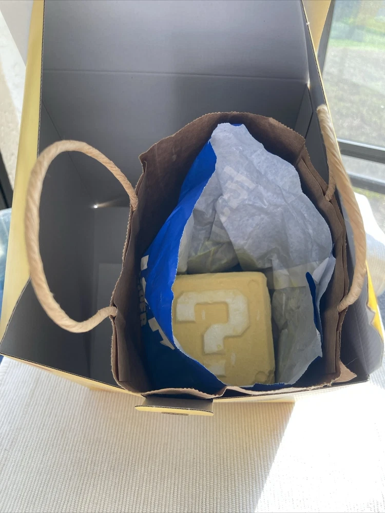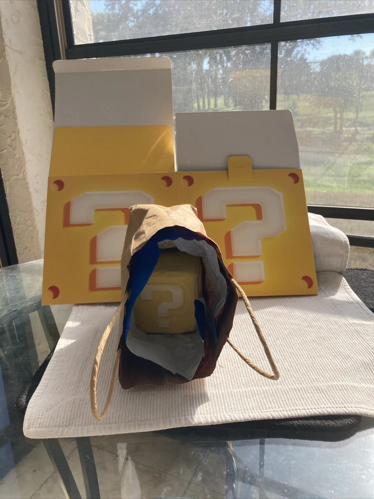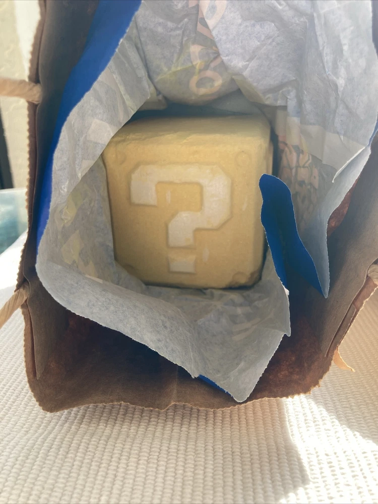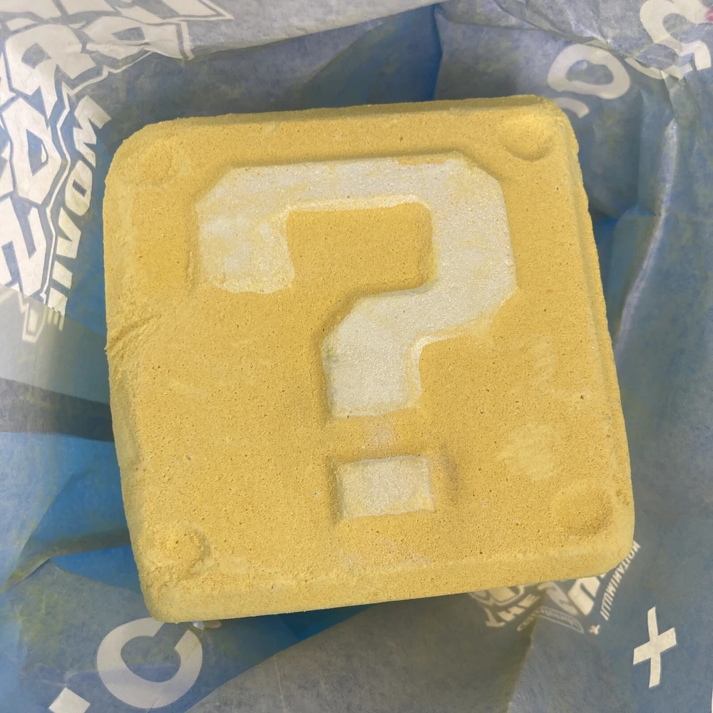 Lush x The Super Mario Bros. Movie Mystery Question Block Bath Bomb Body Soap and Mario X gift box. Box made for item. 2 pcs. Total. Nintendo with Lush collab. ***COLLECTOR***SPECIAL EDITION*** both items!!! It's time to power-up your bathing! Inside each mysterious Question Block is one of six soapy power-ups, each with its own unique blend of fragrance and color to give you a 1-up on bathing and really take it to the next level. Drop your Question Block into a warm bath and unleash your very own super power. What will you reveal? Let’s-a go! Power-up your bathing and watch The Super Mario Bros. Movie, only in theaters. One of six random soaps are inside each Question Block Find a flower, mushroom, coin or star soap, each with a different scent Feeling lucky? The star soap is the most rare Both items are new, but box has some imperfections, dents, bends, creases from displaying in store possibly. See last photos. STRICTLY “Sold AsIs” Please review photos and let me know if you have any questions. Photos are part of the description and show any flaws as disclosed above. Thanks for looking. Check out my other items!