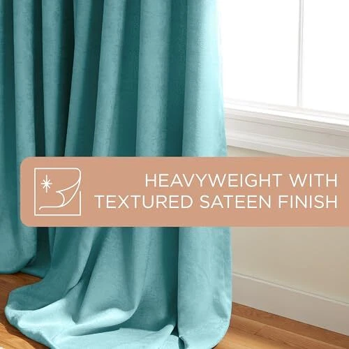 Lustre Solid Heavyweight Textured Sateen Indoor Curtains, Room Darkening Opac...