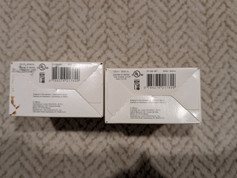 Works w/Alexa,Google Assistant,Ring and more(hub required) Neutral wire required; 10-Watt minimum load Pair w/a Pico remote for wireless control of your lights Bring Technology and style to your home w/the Lutron Caseta ELV+ dimmer. Caseta by Lutron allows you to control your lights from anywhere within your home w/the Pico remote control(sold separately)or from anywhere w/your mobile device via the free app and Lutron Caseta Smart Hub(also sold separately). The Caseta ELV+ Dimmer allows you to recall your favorite light level w/the new preset button for added convenience and is designed to control many loads types: 500-Watt of incandescent,halogen or electronic low-voltage,400-Watt of magnetic low-voltage and 250-Watt of dimmable LED or dimmable CFL(neutr... Simple life Caseta Smart Lighting Dimmer Switch for ELV Bulbs,250W LED Bulbs,White(PD-5NE-WH Works w/Alexa,Google Assistant,Ring and more(hub required) Neutral wire required; 10-Watt minimum load Pair w/a Pico remote for wireless control of your lights Bring Technology and style to your home w/the Lutron Caseta ELV+ dimmer. Caseta by Lutron allows you to control your lights from anywhere within your home w/the Pico remote control(sold separately)or from anywhere w/your mobile device via the free app and Lutron Caseta Smart Hub(also sold separately). The Caseta ELV+ Dimmer allows you to recall your favorite light level w/the new preset button for added convenience and is designed to control many loads types: 500-Watt of incandescent,halogen or electronic low-voltage,400-Watt of magnetic low-voltage and 250-Watt of dimmable LED or dimmable CFL(neutral wire connection and 10-Watt minimum load required for all load types). Out of the boxthe dimmer is set to control ELV,incandescent,halogen and many compatible LEDs,however is phase selective the dimmer output can be changed for MLV and certain LED bulbs w/simple button press programming. The Caseta ELV+ dimmer is a great solution for LED fixtures w/integrated,built-in drivers,ELV track lights and problem LEDs that may prefer an ELV dimmer. To use in a multi-location application,replace the existing switch w/a Pico remote control and wall plate adapter(both sold separately). Please note,wall plate for dimmer is also sold separately. EASY INSTALL: Easily replaces your existing switch in as little as 15 minutes; NEUTRAL WIRE REQUIRED Smart ELV Dimming: Gain smart dimming control of your track lighting,recessed lighting,or any other application involving electronic low voltage(ELV)fixtures(smart hub,L-BDG2-WH,required for smart control) PEACE OF MIND: Set lights to automatically adjust w/seasons so your family always comes back to a well-lit home; enable smart away to randomly turn your lights on/off to look like you're home even if you're away(Caseta Smart Hub,L-BDG2-WH,required) MOST CONNECTED: Caseta connects w/more leading smart home devices-including Amazon Alexa,Apple Home,the Google Assistant,Ring,Serena shades and Sonos-than any other smart lighting control brand(Caseta Smart Hub required) PEACE OF MIND: Set lights to automatically adjust w/seasons so your family always comes back to a well-lit home; enable smart away to randomly turn your lights on/off to look like you're home even if you're away(Caseta Smart Hub,L-BDG2-WH,required)(Caseta Smart Hub,L-BDG2-WH,required) GET MORE,SPEND LESS: One Caseta smart switch can control many bulbs at once; make many bulbs smart,even your existing bulbs. Get smart control of multiple styles of dimmable LED,incandescent,and halogen bulbs WIRELESS REMOTE CONTROL: For added convenience,use w/wireless Pico remote(PJ2-3BRL-GXX-L01)to turn your lights on,off,or dim and brighten w/the touch of a button from anywhere in the home EASY 3-WAY SETUP: Create a 3-way by mounting Pico to almost any wall surface-no cutting holes or pulling wire,w/a wall mount bracket(PICO-WBX-ADAPT sold separately). Replace existing 3-way switches by mounting the bracket and Pico over the backbox TECHNICAL DETAILS: Works w/up to 250W of dimmable LED/CFL,500W of incandescent/halogen or ELV,or 400W MLV; 10W minimum load required INCLUDES:(1)Caseta smart dimmer switch for ELV; coordinating wall plate sold separately INCLUDES:(1)Caseta smart dimmer switch for ELV; coordinating wall plate sold separately coordinating wall plate sold separately Need installation help? Click here for an interactive step by step wiring guide. Click here for more information on Electronic Recycling Programs Amperage(A):3.3 A|Color Family:White|Color/Finish:White|Commercial/Residential:Residential|Compatible Bulb Type:CFL,Halogen,Incandescent,LED|Device Style Type:Dimmer w/o Wall Plate|Dimmable Capability:Dimmable|Dimmer Type:Tap|Durability:Not Applicable|Electrical Features:No Additional Features|Finish Type:Gloss|Function Type:Single Pole|Included:No Additional Items Included|Indoor/Outdoor:Indoor|Material:Resin|Maximum Amperage(A):3.3 A|Mounting Type:In-Wall|Number of Poles:1|Number of Switches:One|Package Quantity:1|Rating:General Purpose|Switch Depth(in.):1.56 in|Switch Height(in.):4.69 in|Switch Style:Push Button|Switch Width(in.):2.93 in|Voltage:120 volt|Voltage(V):120 V|Wall Plate Configuration:Decorator/Rocker|Wattage(W):500 W|Wattage Equivalence:500|Certifications and Listings:UL Listed|Manufacturer Warranty:1 Year Item Specifics UPC 784276217699 MPN PD-5NE-WH Type Dimmers Brand Lutron Payment If you do not have a PayPal account, to get started and buy your first item with us is very easy. Simply click on the 'Buy It Now' button and follow the eBay checkout steps. Select PayPal as the payment method you then will be given the chance to enter your card details in to PayPal's secure checkout in order to pay for your order. Shipping 1. Normally all of parcels would be shipped within 3days(From Monday to Saturday). 2. We provide three kinds of shipping for choice. Shipping way depend on delivery address. Returns If an unit is received defective, of course we take it back or replace it. If the unit 