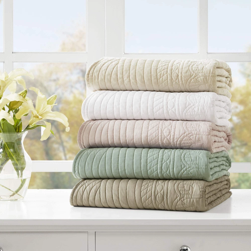 The Tuscany Quilted Throw is perfect for a new luxurious look. The decorative stitch pattern pairs easily with your existing décor and adds a stylish element with beautiful scalloped edges. Made from a soft polyester microfiber, this quilted throw is filled with cotton filling for extra comfort and warmth. The prewash finish gives this decorative throw a worn appearance for added charm. Quilted Overfilled 60"x72" Microfiber quilted throw Filling: 7oz/sq yard 90% cotton 10% other fiber Prewash finish 1 Throw:60"W x 72"L Machine wash