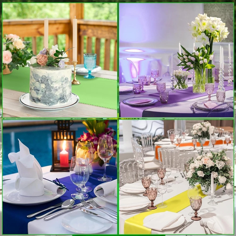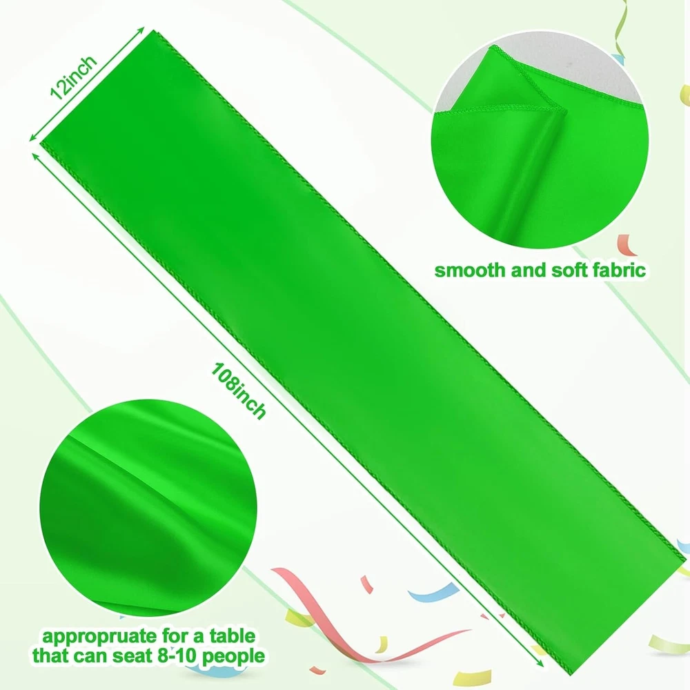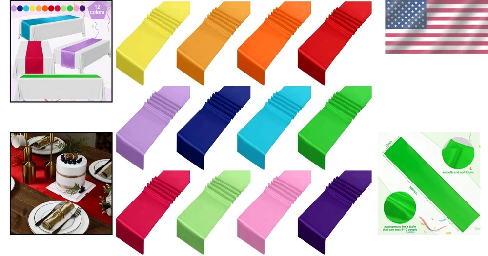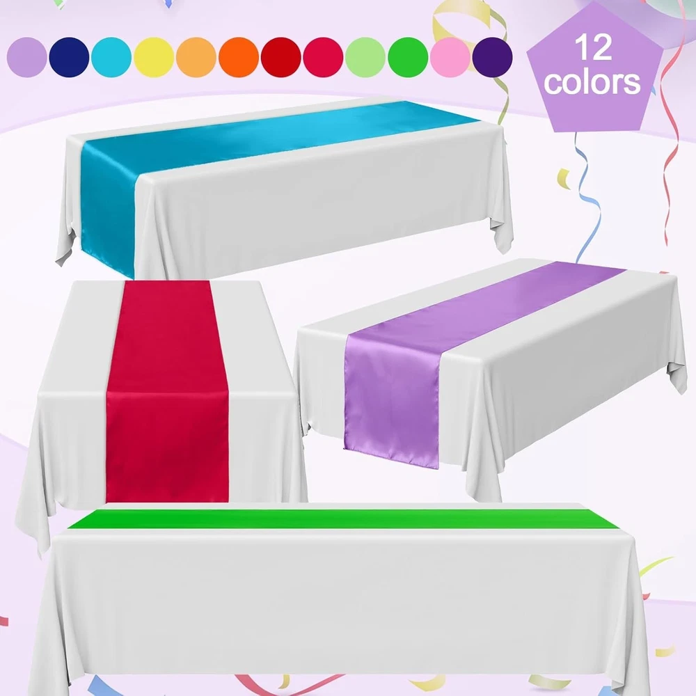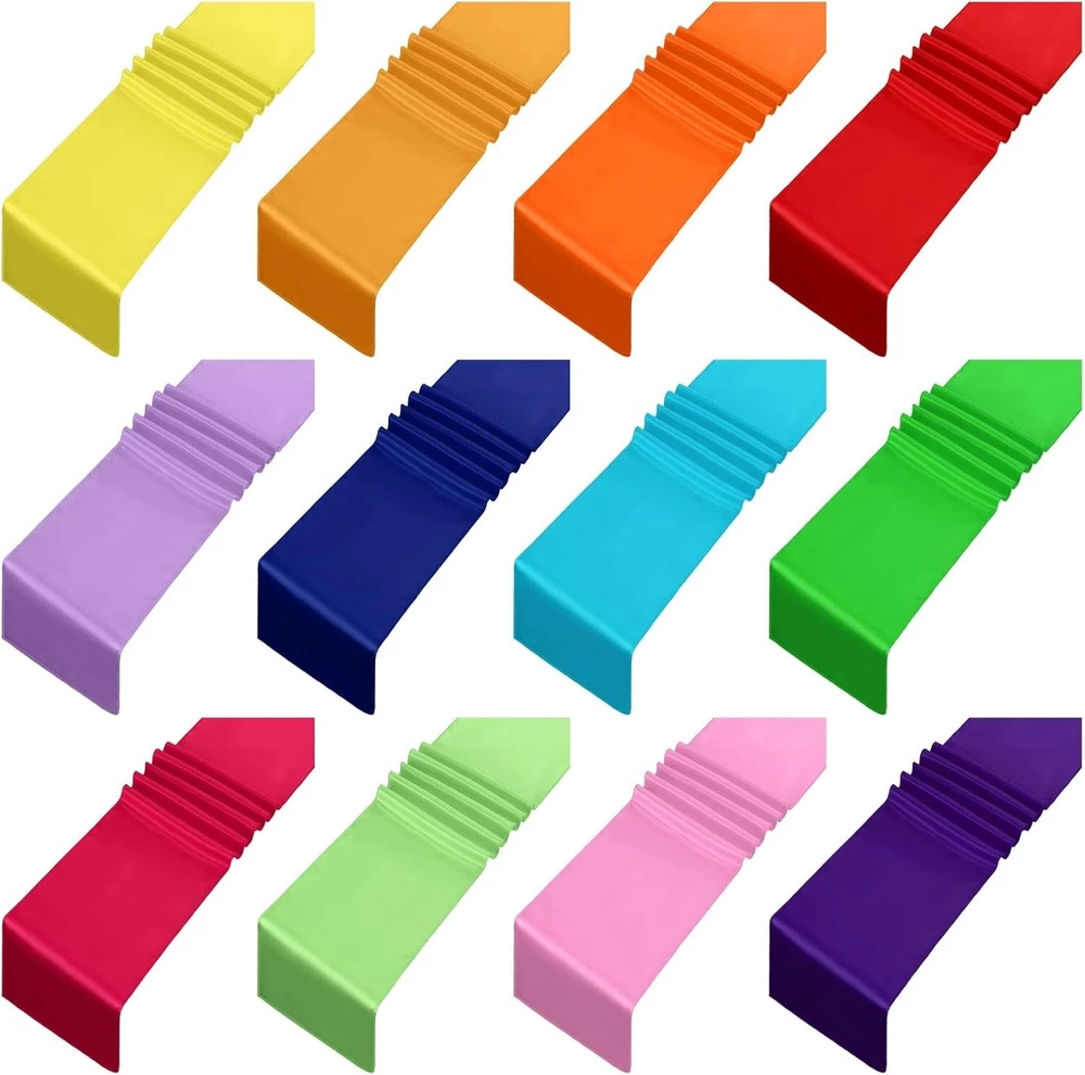 Assembly Required: No gtin13: Does not apply Fabric Type: Polyester Satin Product Dimensions: 108"l X 12"w Batteries Required: No UPC: Does not apply Style: Modern Color: Multicolor Type: Table Runner Pattern: Solid Brand: Unbranded Item Weight: 3.34 Pounds Material: Polyester Satin, Satin, Silk, Polyester Shape: Rectangular Product Care Instructions: Machine Wash Item Package Quantity: 24 Size: Bright Color