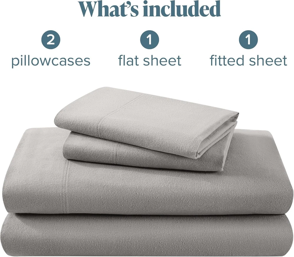 Luxurious 4-Piece Flannel Bedding Set - Deep Pocket Queen, Light Grey Winter ‹ › ‹ › ‹ › ‹ › ‹ › ‹ › ‹ › ‹ › ‹ › ‹ › ‹ › Luxurious 4-Piece Flannel Bedding Set Deep Pocket Queen, Light Grey Winter WHAT’S INCLUDED: Queen Fitted Sheet with 15” deep pockets (60” x 80”) Queen Flat Sheet (90” x 102”) Two Standard Pillowcases (20” x 30”) Features: Soft & Durable: Crafted from tightly woven, high-quality flannel for a gentle, extra-soft feel. Winter Warmth: Perfect for staying toasty warm during the colder months. 100% Cotton: Hypoallergenic, breathable, skin-friendly, and eco-conscious. Machine Washable: Designed for convenience without sacrificing quality. OEKO-TEX STANDARD 100 Certified: Rigorously tested against harmful substances. Benefits: Experience plush comfort and warmth during chilly nights. Unwind in a hypoallergenic sleeping environment, ensuring your skin stays irritation-free. Easy to care for, ensuring your bedding remains fresh and pristine. Safe for you and your family, with a commitment to eco-friendly manufacturing practices. Why Choose Our Luxurious Flannel Bedding Set? Transform your sleep experience with our Luxurious 4-Piece Flannel Bedding Set, where comfort meets sophistication. Each element of this bedding set has been meticulously curated to elevate your sleeping sanctuary. The deep pockets ensure a secure fit on your mattress, while the soft, durable flannel keeps you warm and cozy during those frosty nights. Gift yourself or a loved one a touch of indulgence this winter—choose a bedding set that promotes safety, comfort, and elegance. Detox your sleep with bedding made without harmful chemicals and dyes. Choose wisely; choose luxury that cares. Shipping Free & Fast Shipping - We offer free shipping to most of the USA with a normal delivery time of 3-7 days. However, due to the current situation, additional delivery time (up to 3 weeks) may be required for some items. Alternative Carriers - We may use alternative carriers (e.g. USPS, FedEx, UPS, etc.) to ensure your package arrives safely and on time. Due to the use of multiple carriers, we are unable to provide a tracking number automatically. Handling Time - Orders are processed and shipped within 1-2 business days of receiving cleared payment. Shipping Restrictions - Shipping to Alaska, Hawaii, Puerto Rico, Guam, and other US territories may incur shipping charges or delivery restrictions. Please contact us before ordering, or your order can be refunded/cancelled. State Restrictions - There may be restrictions based on your state of purchase. For example, certain items may not be shipped to California due to state regulations. Contact for Tracking Updates - If you require tracking updates or have any concerns about the delivery of your order, please feel free to contact us, and we will be happy to assist you. Return Please see our eBay Return Policy. Thank you. Payment We accept all major credit cards, PayPal, and Apple Pay for your convenience. Your payment information is secure and encrypted to ensure a safe and seamless transaction. Please complete your payment within 3 days of purchase to avoid any delays in shipping. Feedback Your feedback is extremely important to us. We strive to provide the best products and customer service possible. If you are satisfied with your purchase, please take a moment to leave us a positive review. If you have any concerns or issues with your order, please contact us before leaving negative feedback. We are committed to resolving any problems and ensuring your satisfaction. Contact Us If you have any questions or concerns, please feel free to reach out to our customer support team. You can contact us through the eBay messaging system. We are available Monday to Friday, 9:00 am to 5:00 pm EST, and we will do our best to respond to your inquiry within 24 hours. Thank you for supporting our small family business! UPC: Not Set Item Length: Not Set Item Width: Not Set Unit Quantity: 1 count Material: 100% Cotton,Flannel Character: Not Set Theme: Luxury Care Instructions: Machine Wash Features: Breathable,Hypoallergenic,Machine Washable Department: Adults Room: Bedroom Labels & Certifications: Not Set Brand: Unbranded Size: Queen Type: Sheet Set Color: Light Grey Pattern: Solid Character Family: Not Set MPN: Not Set Country/Region of Manufacture: Not Set Thread Count: 301-400 Style: Modern Shape: Rectangular Model: Not Set GSM (Grams per Square Meter): Over 800 Product Line: Not Set Unit Type: Unit