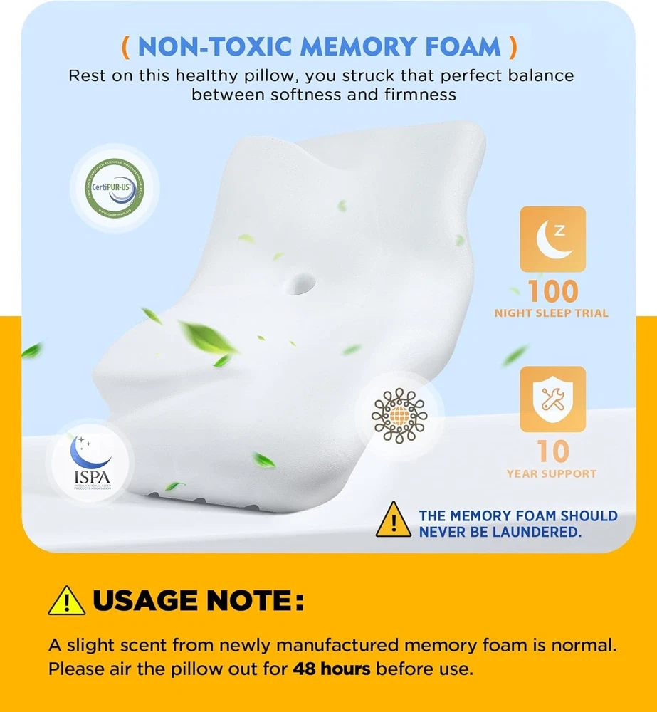 Luxurious Odorless Memory Foam Pillow for Side and Back Sleepers - Adjustable ‹ › ‹ › ‹ › ‹ › ‹ › ‹ › ‹ › ‹ › ‹ › Luxurious Odorless Memory Foam Pillow Perfect for Side and Back Sleepers - Adjustable STOP! THE NECK PAIN & SLEEPLESS NIGHTS ARE OVER! After of discomfort, you've found salvation at last! Meet the game-changer in the pillow industry – the all-new ergonomic pillow with US patent – ! This unique design features a hollow center that cradles your head and helps maintain the natural cervical curve, ensuring proper vertebrae alignment. Experience uninterrupted blood flow to your neck and head while relieving pressure and muscle tension. THE BEST INVESTMENT OF YOUR REST & HEALTH! Do you wake up with neck cramps or back soreness? The wrong pillow may be the culprit! Dr. Andrew Hecht, a renowned surgeon, emphasizes that the right pillow is essential to minimize headaches, neck pain, and discomfort. The neck pillow is designed to fit side, back, and stomach sleepers, providing thoughtful curves, divots, and angles for ultimate support. Choose us for better sleep and a healthier future! HOT SLEEPERS & ALLERGY SUFFERERS, REJOICE! The neck support pillow is outfitted with a 3D mesh fiber pillowcase that facilitates airflow, allowing heat to escape while ensuring a cool and refreshing sleep environment. Sensitive to odors? Fear not! Our natural, odorless materials ensure a pleasant night's rest. Rest assured that each memory foam pillow is CertiPUR-US certified and Oeko-Tex approved, meaning you won't be exposed to harmful substances while you sleep. ADJUSTABLE! ENJOY PERSONALIZED COMFORT FOR YOUR SLEEP STYLE! We've all faced the struggle of finding the right pillow height. Now, you can control yours! With two different thicknesses, simply rotate your pillow 180 degrees for a custom feel. The removable insert adds even more height options, making it perfect for every night's sleep. HASSLE-FREE AFTER-SALE SUPPORT - NO NEED TO RETURN! Say goodbye to expensive cervical rehabilitation treatments! Enjoy pain-relieving sleep effortlessly with the contour pillow. Pro Tip: Allow your pillow to air for 48 hours prior to use for full expansion and to help dissipate any natural odors. Customer satisfaction is our priority - if you’re not completely satisfied, just contact us, and we’ll take care of you! Why Choose ? It's time to invest in your sleep and embrace restful nights with the luxurious pillow - the ultimate solution for cervical spine health! Shipping Free & Fast Shipping - We offer free shipping to most of the USA with a normal delivery time of 3-7 days. However, due to the current situation, additional delivery time (up to 3 weeks) may be required for some items. Alternative Carriers - We may use alternative carriers (e.g. USPS, FedEx, UPS, etc.) to ensure your package arrives safely and on time. Due to the use of multiple carriers, we are unable to provide a tracking number automatically. Handling Time - Orders are processed and shipped within 1-2 business days of receiving cleared payment. Shipping Restrictions - Shipping to Alaska, Hawaii, Puerto Rico, Guam, and other US territories may incur shipping charges or delivery restrictions. Please contact us before ordering, or your order can be refunded/cancelled. State Restrictions - There may be restrictions based on your state of purchase. For example, certain items may not be shipped to California due to state regulations. Contact for Tracking Updates - If you require tracking updates or have any concerns about the delivery of your order, please feel free to contact us, and we will be happy to assist you. Return 30-Day Hassle-Free Returns - We want you to be completely satisfied with your purchase. If you are not, you can return the item within 30 days of receiving it for a full refund or exchange. Easy Return Process - To start a return, simply contact us and we will provide you with a prepaid return shipping label and detailed instructions. Restocking Fee - There are no restocking fees for returns. However, the buyer is responsible for return shipping costs if the return is not due to a seller's error. Refund Processing Time - Refunds will be processed within 5 business days of receiving the returned item in its condition. Payment We accept all major credit cards, PayPal, and Apple Pay for your convenience. Your payment information is secure and encrypted to ensure a safe and seamless transaction. Please complete your payment within 3 days of purchase to avoid any delays in shipping. Feedback Your feedback is extremely important to us. We strive to provide the best products and customer service possible. If you are satisfied with your purchase, please take a moment to leave us a positive review. If you have any concerns or issues with your order, please contact us before leaving negative feedback. We are committed to resolving any problems and ensuring your satisfaction. Contact Us If you have any questions or concerns, please feel free to out to our customer support team. You can contact us through the eBay messaging system. We are available Monday to Friday, 9:00 am to 5:00 pm EST, and we will do our best to respond to your inquiry within 24 hours. Buy it now and enjoy a pleasant shopping experience! Item Length: Cervical Pillow for Neck Pain Item Width: Cervical Pillow for Neck Pain Unit Quantity: 1 Material: Memory Foam,100% Polyester Features: Cooling,Ergonomic,Adjustable,Portable Care Instructions: Machine Wash Room: Bedroom Size: Cervical Pillow for Neck Pain Type: Cervical Pillow Color: White Fill Material: Memory Foam Shape: Ergonomic Pattern: Solid Style: Modern Closure Type: No Closure Thread Count: 200 or Less GSM (Grams per Square Meter): Below 150