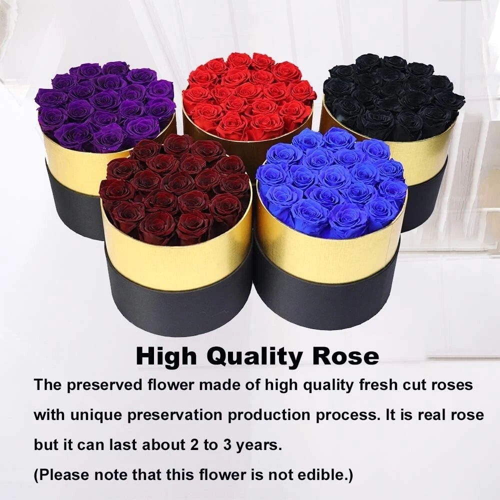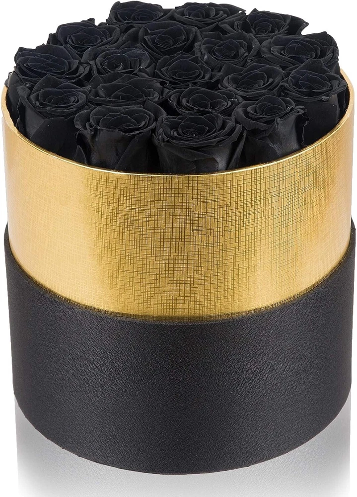 Container Shape: Box Batteries Required: No Item Package Quantity: 1 Product Dimensions: 7.5"d X 7.5"w X 8.5"h Brand: Unbranded Unit Count: 18 Count Personalized: No Material: Silk, Rose, Cardboard Product: Preserved Roses Artificial/Fresh: Artificial Container Material: Cardboard Recommended Uses For Product: Indoor Number Of Items: 1 Package Information: Box Color: Black Personalize: No Indoor/outdoor Usage: Indoor Type: Flower Box Form: Arrangement & Centerpiece Size: 7.5 in Plant Or Animal Product Type: Rose Item Weight: 1 Pounds Occasion: Mother's Day gtin13: Does Not Apply Specific Uses For Product: Home Decor Shape: Box Common Name: Rose Base Diameter: 7.5 Inches UPC: Does Not Apply Number in Pack: Less Than 10 Included Components: Silk Box