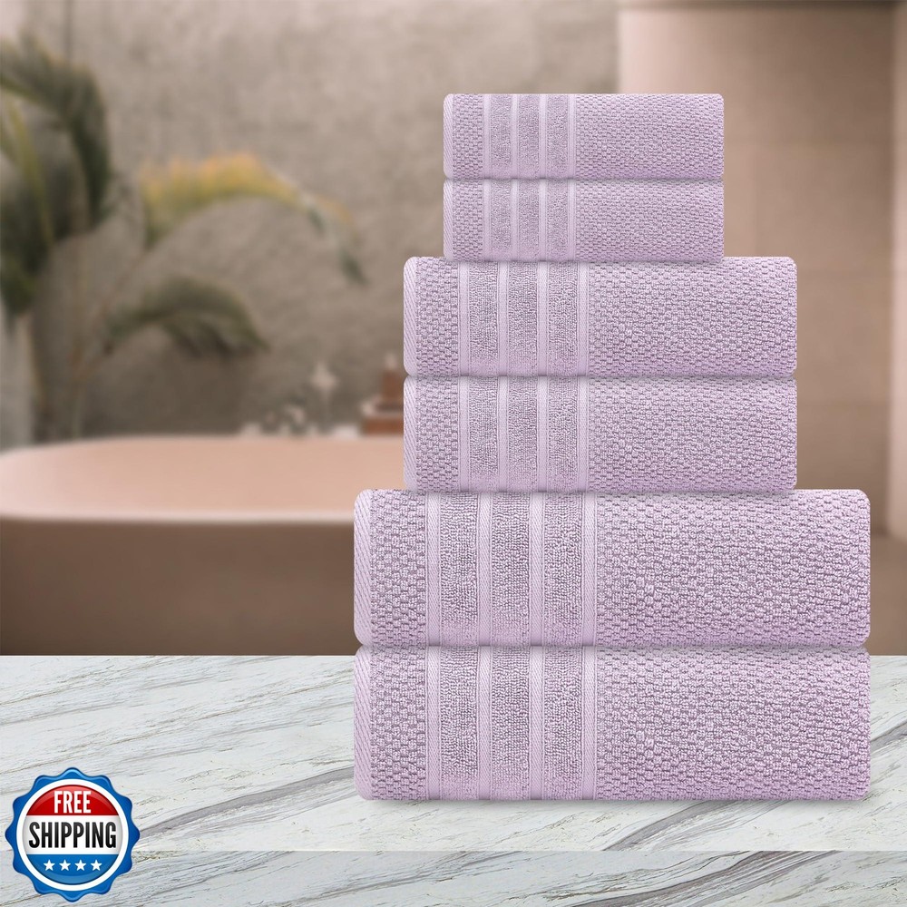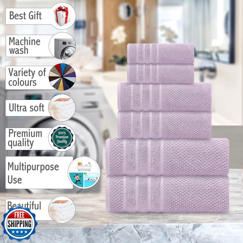 Bath Towels Set-100% Cotton- 2 Bath, 2 Hand and 2 Washcloths- Large, Thick, Fluffy, Absorbent, Quick Dry, Soft and Plush - Home, Hotel, Gym Towel -6 Piece Luxury Bathroom Towels- Lavender/Light Purple Features SET INCLUDES : 2 Bath Towels ( 27 inch * 54 inch ) , 2 Hand Towels ( 16 inch * 28 inch ) and 2 Washcloths ( 12 inch * 12 inch ). QUALITY MATTERS : Woven with pure 100% ring spun cotton, comes with a double stitch hem for enhanced durability & strength. These highly absorbent & super soft towels are crafted to provide years of enjoyment. PREMIUM LUXURY : Enjoy the ultra soft touch of plush, fluffy & premium towels. These Hotel & Spa quality towels provide a luxurious & elegant bathing design to beautifully complement your home decor. EASY CARE & MACHINE WASHABLE : All of CraftBerry's premium towels are easy to care, quick dry & machine washable. These are highly durable and designed to grow softer & fluffier with every wash. Ideal for every day use. CUSTOMER SATISFACTION : We have 100% confidence in the quality of our products. We continuously strive to deliver the best customer experience, customer satisfaction is of utmost importance to us. Shipping Free & Fast Shipping: We offer free shipping to most of the USA with a normal delivery time of 3-7 days. However, due to the current situation, additional delivery time (up to 3 weeks) may be required for some items. Alternative Carriers: We may use alternative carriers (e.g., USPS, FedEx, UPS) to ensure your package arrives safely and on time. Due to the use of multiple carriers, we are unable to provide a tracking number automatically. Handling Time: Orders are processed and shipped within 1-2 business days of receiving cleared payment. Shipping Restrictions: Shipping to Alaska, Hawaii, Puerto Rico, Guam, and other US territories may incur shipping charges or delivery restrictions. Please contact us before ordering, or your order can be refunded/cancelled. State Restrictions: Certain items may not be shipped to California due to state regulations. Contact for Tracking Updates: If you require tracking updates or have any concerns about the delivery of your order, please feel free to contact us, and we will be happy to assist you. Return Policy 30-Day Hassle-Free Returns: If you are not completely satisfied with your purchase, you can return the item for free within 30 days of receiving it for a full refund or exchange. Easy Return Process: Contact us, and we will provide you with a prepaid return shipping label and detailed instructions. No Restocking Fee: There are no restocking fees for returns. However, the buyer is responsible for return shipping costs if the return is not due to a seller"s error. Refund Processing: Refunds will be processed within 1 business day of receiving the returned item in its original condition. Feedback Your feedback is extremely important to us. We strive to provide the best products and customer service possible. If you are satisfied with your purchase, please take a moment to leave us a positive review. If you have any concerns or issues with your order, please contact us before leaving negative feedback. We are committed to resolving any problems and ensuring your satisfaction. Contact Us If you have any questions or concerns, please feel free to reach out to our customer support team. You can contact us through the eBay messaging system. We are available Monday to Friday, 9:00 am to 5:00 pm EST, and we will do our best to respond to your inquiry within 24 hours. Thank you for supporting our small family business!