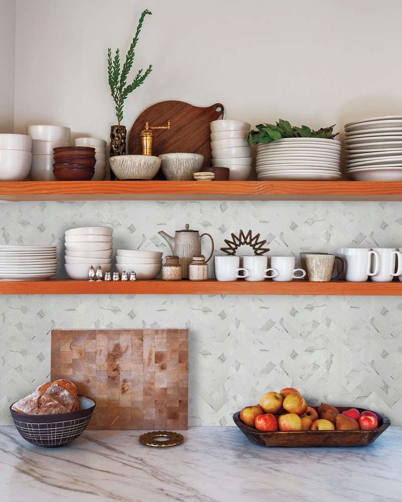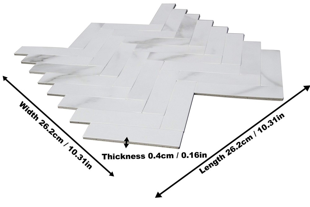 $ 12.6710-Herringbone Tile Peel and Stick Backsplash, White Marble PVC Stick on Back...