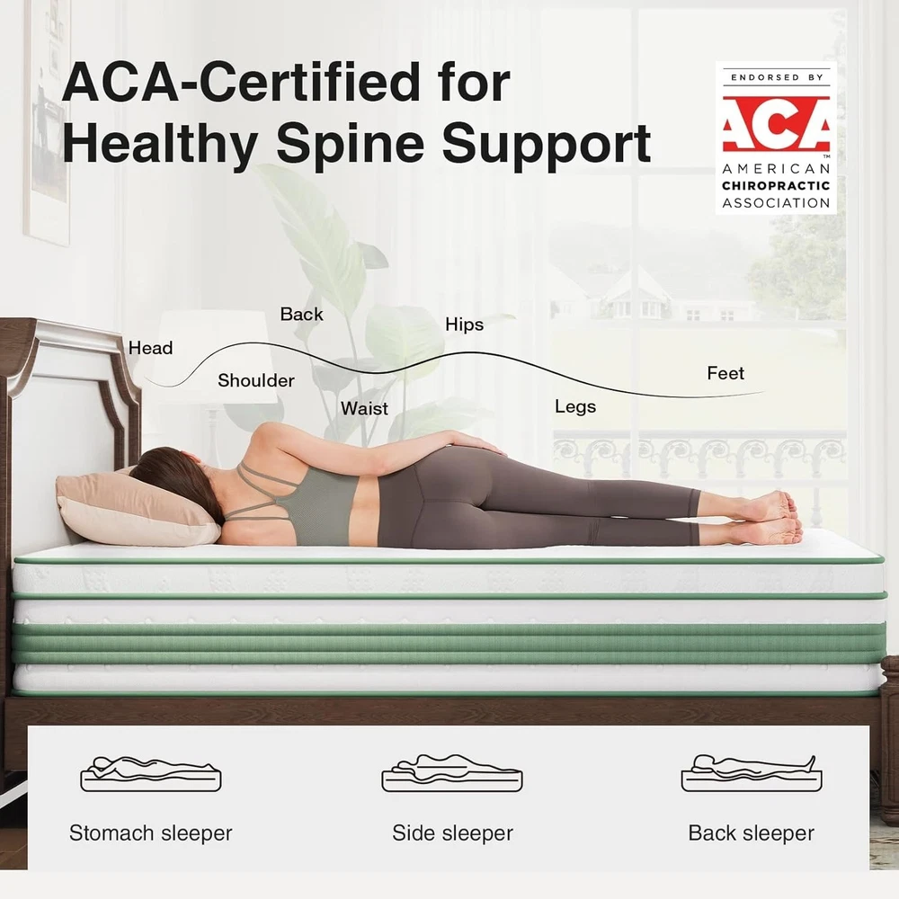 Eco-Friendly Full Size Hybrid Mattress - 12 Inch Pressure Relief & Easy Setup