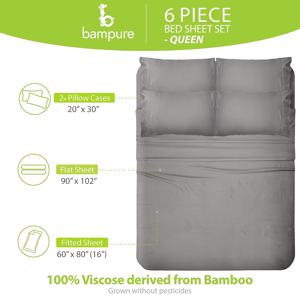 Store New Arrivals Add to Favorite View Feedback Contact Luxury Series 6 Pcs Queen Sheet Set - 100% Pure Viscose Derived from Bamboo Sheets Queen Size - Super Soft Queen Cooling Sheets for Hot Sleepers - up to 16’’ Deep Pocket Queen Sheets (S Gray) Description Item model number 6 Pc Bamboo Sheets Queen Size Style Queen Stone Grey Weave Type Sateen Pattern Solid Country of Origin China Theme Winter Number of Pieces 6 Unit Count 1 Count Fitted Sheet Pocket Depth 13.38 Inches Pillowcase Quantity 4 Material Viscose Derived from Bamboo Item Display Dimensions 13.38 x 2.75 x 9.44 inches Age Range (Description) Adult Seasons All Is Discontinued By Manufacturer No Included Components 1 Fitted Sheet, 1 Flat Sheet, 4 Pillowcases Closure Type Envelope Item dimensions L x W x H 13.38 x 2.75 x 9.44 inches Item Weight 5.85 pounds Sham Quantity 4 Special Feature Deep Pocket, Wrinkle Resi, Breathable Color Stone Gray Thread Count 1800 Product Dimensions 13.38 x 2.75 x 9.44 inches Product Care Instructions Machine Wash, Hand Wash Only Size Queen - 6 Pieces Set PURE 100% VISCOSE DERIVED FROM BAMBOO: Experience the pure luxury of 100% viscose derived from bamboo sheet set. COMPLETE 6-PIECE QUEEN SIZE SHEET SET: Experience a touch of luxury every night with our complete 6-piece queen bed set. This set includes 1 luxuriously soft flat sheet (90"x102"), 1 fully elasticized fitted sheet (60"x80") for a secure fit on mattresses up to 16 inches deep, and 4 envelope-style colling pillow cases (20"x30") with overlapping closures for added comfort. Our queen bed sets are machine washable for easy care and get softer with every wash. ULTIMATE COOLING COMFORT & BREATHABLE BLISS: Experience the unparalleled softness and natural breathability of 100% viscose derived from bamboo cooling sheets. These cooling bed sheets are thermo-regulating, keeping you cool and relaxed all night long, perfect for hot sleepers or those with sensitive skin. The moisture-wicking properties ensure year-round comfort, allowing you to indulge in luxurious softness with every wash. DEEP POCKETS ,SILKY SMOOTH SATEEN WEAVE: Woven in a luxurious sateen weave, these 100% viscose derived from bamboo sheets offer an incredibly soft and smooth feel that gets even softer with every wash. Indulge in hotel-like comfort every night. Our deep pocket queen sheet set features a fully elasticized fitted sheet with a deep pocket (fits mattresses up to 16 inches) for a secure, stay-put fit. OEKO-TEX STANDARD 100 CERTIFIED: Responsibly sourced and Crafted from 100% viscose derived from bamboo bed sheets, a sustainable resource. These OEKO-TEX sheets are free from harmful substances for a healthy sleep environment. Unlike most, our sheets queen size bed set offer a luxurious, sustainable sleep experience you won't find anywhere else. Upgrade your sleep tonight! Product Description One Of A Kind Bamboo Sheets An average person spends around 26 years asleep in a lifetime. That reason only was enough of an inspiration for us to design our game- changing & luxurious Bampure viscose made from bamboo bed sheets that will help you sleep like a baby every single night. Top Of The Line Experience Bampure viscose made from bamboo bed sheet set has been carefully manufactured to bring you next level comfort. No more looking for a "cold spot" on your pillow, no more sweating at night, No more harmful synthetics - just pure relaxation. Corner Strap Included Every Bampure viscose bamboo bed sheet set comes with a fitted sheet. Not just any fitted sheet - ours features corner straps that keep the fitted sheet in place at all times. Available In Multiple Colors Choose between a wide array of colors & decorate your bedroom like never before. 4 Pillowcases Every set comes with 4 envelope style pillowcases that not only look good, but also feel good. There's More To Viscose derived from Bamboo Bed Sheets Than You'd Think Bampure bed sheets are as close to nature as it gets - they're crafted from 100% Viscose made from Bamboo. Viscose bamboo sheets are also softer than any cotton sheets available. Combine all that with durability & breathability - it's a perfect recipe for a truly dreamy experience. Bring Nature To Your Bedroom Being in close touch with nature is beneficial in all areas of life. Then why wouldn't you bring it to the bedroom? The team at Bampure is here to provide our customers natural, organic & comfortable bedding. Discover our selection of nature-driven bedroom accessories! ABOUT US We offer the best prices around on high quality products. Our E-store includes media such as books, movies, music and games while offering electronics, toys, sporting apparel, clothing, tools, general home, garden items and more. SHIPPING We are always working hard to ensure your package arrives as soon as possible. Please understand that some factors like weather, high postal traffic, and the performance of shipping companies are outside of our control. We offer free shipping to the lower 48 states and ship within 2 business days of payment, usually sooner. We do not accept P.O. Boxes. Please provide a physical address. For shipping outside of the continental USA, we only use eBay's Global Shipping Program.The item is shipped to KY and then sent to the rest of the world. International customers are responsible for all duties and taxes. Continue to check out in order to calculate costs for shipping the item to your country. Messages regarding eBay's Global Shipping Program MUST be directed at eBay EXCLUSIVELY. RETURNS We offer a 30-Day Return Policy on items which you are not completely satisfied with. You have the option for a full-refund or an exchange of the item. No returns are available on items shipped outside of the USA. PAYMENT We accept PayPal. CONTACT US This page content is yet to come Please ad us to your favorite seller and visit again later Thank You CUSTOMER SATISFACTION We try our very best to make sure every customer is completely satisfied. If there's a problem,