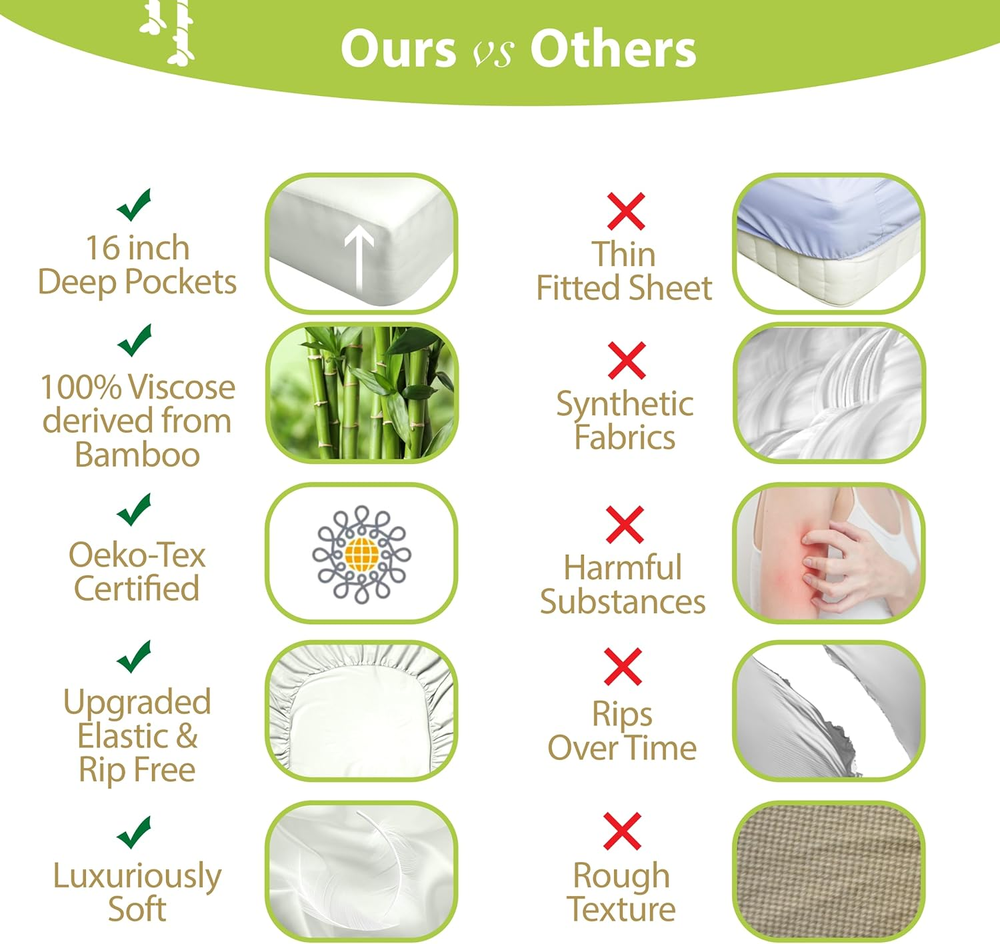 Store New Arrivals Add to Favorite View Feedback Contact Luxury Series 6 Pcs Queen Sheet Set - 100% Pure Viscose Derived from Bamboo Sheets Queen Size - Super Soft Queen Cooling Sheets for Hot Sleepers - up to 16’’ Deep Pocket Queen Sheets (Sglass) Description Item model number 6 Pc Bamboo Sheets Queen Size Style Queen Seaglass Weave Type Sateen Pattern Solid Country of Origin China Theme winter Number of Pieces 6 Unit Count 1 Count Fitted Sheet Pocket Depth 9.44 Inches Pillowcase Quantity 4 Material Viscose from Bamboo Item Display Dimensions 13.38 x 2.75 x 9.44 inches Age Range (Description) Adult Seasons All Is Discontinued By Manufacturer No Included Components 1 Fitted Sheet, 1 Flat Sheet, 4 Pillowcases Closure Type Envelope Item dimensions L x W x H 13.38 x 2.75 x 9.44 inches Item Weight 5.74 pounds Sham Quantity 4 Special Feature Deep Pocket, Wrinkle Resi, Breathable Color Seaglass Thread Count 1800 Product Dimensions 13.38 x 2.75 x 9.44 inches Product Care Instructions Machine Wash, Hand Wash Only Size Queen - 6 Pieces Set PURE 100% VISCOSE DERIVED FROM BAMBOO: Experience the pure luxury of 100% viscose derived from bamboo sheet set. COMPLETE 6-PIECE QUEEN SIZE SHEET SET: Experience a touch of luxury every night with our complete 6-piece queen bed set. This set includes 1 luxuriously soft flat sheet (90"x102"), 1 fully elasticized fitted sheet (60"x80") for a secure fit on mattresses up to 16 inches deep, and 4 envelope-style colling pillow cases (20"x30") with overlapping closures for added comfort. Our queen bed sets are machine washable for easy care and get softer with every wash. ULTIMATE COOLING COMFORT & BREATHABLE BLISS: Experience the unparalleled softness and natural breathability of 100% viscose derived from bamboo cooling sheets. These cooling bed sheets are thermo-regulating, keeping you cool and relaxed all night long, perfect for hot sleepers or those with sensitive skin. The moisture-wicking properties ensure year-round comfort, allowing you to indulge in luxurious softness with every wash. DEEP POCKETS ,SILKY SMOOTH SATEEN WEAVE: Woven in a luxurious sateen weave, these 100% viscose derived from bamboo sheets offer an incredibly soft and smooth feel that gets even softer with every wash. Indulge in hotel-like comfort every night. Our deep pocket queen sheet set features a fully elasticized fitted sheet with a deep pocket (fits mattresses up to 16 inches) for a secure, stay-put fit. OEKO-TEX STANDARD 100 CERTIFIED: Responsibly sourced and Crafted from 100% viscose derived from bamboo bed sheets, a sustainable resource. These OEKO-TEX sheets are free from harmful substances for a healthy sleep environment. Unlike most, our sheets queen size bed set offer a luxurious, sustainable sleep experience you won't find anywhere else. Upgrade your sleep tonight! Product Description One Of A Kind Bamboo Sheets An average person spends around 26 years asleep in a lifetime. That reason only was enough of an inspiration for us to design our game- changing & luxurious Bampure viscose made from bamboo bed sheets that will help you sleep like a baby every single night. Top Of The Line Experience Bampure viscose made from bamboo bed sheet set has been carefully manufactured to bring you next level comfort. No more looking for a "cold spot" on your pillow, no more sweating at night, No more harmful synthetics - just pure relaxation. Corner Strap Included Every Bampure viscose bamboo bed sheet set comes with a fitted sheet. Not just any fitted sheet - ours features corner straps that keep the fitted sheet in place at all times. Available In Multiple Colors Choose between a wide array of colors & decorate your bedroom like never before. 4 Pillowcases Every set comes with 4 envelope style pillowcases that not only look good, but also feel good. There's More To Viscose derived from Bamboo Bed Sheets Than You'd Think Bampure bed sheets are as close to nature as it gets - they're crafted from 100% Viscose made from Bamboo. Viscose bamboo sheets are also softer than any cotton sheets available. Combine all that with durability & breathability - it's a perfect recipe for a truly dreamy experience. Bring Nature To Your Bedroom Being in close touch with nature is beneficial in all areas of life. Then why wouldn't you bring it to the bedroom? The team at Bampure is here to provide our customers natural, organic & comfortable bedding. Discover our selection of nature-driven bedroom accessories! ABOUT US We offer the best prices around on high quality products. Our E-store includes media such as books, movies, music and games while offering electronics, toys, sporting apparel, clothing, tools, general home, garden items and more. SHIPPING We are always working hard to ensure your package arrives as soon as possible. Please understand that some factors like weather, high postal traffic, and the performance of shipping companies are outside of our control. We offer free shipping to the lower 48 states and ship within 2 business days of payment, usually sooner. We do not accept P.O. Boxes. Please provide a physical address. For shipping outside of the continental USA, we only use eBay's Global Shipping Program.The item is shipped to KY and then sent to the rest of the world. International customers are responsible for all duties and taxes. Continue to check out in order to calculate costs for shipping the item to your country. Messages regarding eBay's Global Shipping Program MUST be directed at eBay EXCLUSIVELY. RETURNS We offer a 30-Day Return Policy on items which you are not completely satisfied with. You have the option for a full-refund or an exchange of the item. No returns are available on items shipped outside of the USA. PAYMENT We accept PayPal. CONTACT US This page content is yet to come Please ad us to your favorite seller and visit again later Thank You CUSTOMER SATISFACTION We try our very best to make sure every customer is completely satisfied. If there's a problem, message us! 