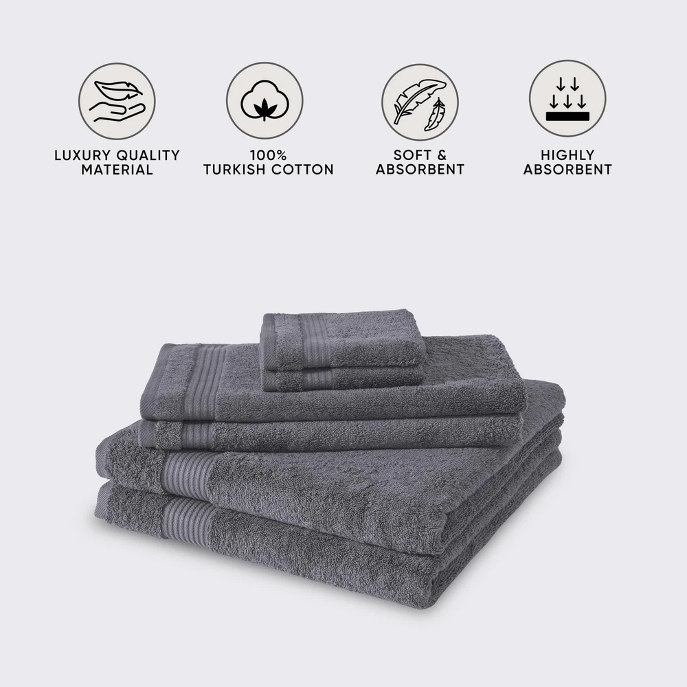 At , we take pride in offering a diverse range of towels and bath products designed to cater to every member of your family. From luxurious bath towels for adults to charming towels sets, our products are crafted to meet the highest standards of quality and comfort. Explore our collection and discover why we are the go-to choice for towels and washcloths. Our washcloths come in a range of sizes and textures to meet various needs. This collection comprises 6 piece towels set with 2 bath towels (30 x 54 inches), 2 hand towels (16 x 27 inches), and 2 washcloths (12 x 12 inches). Our selection of towels includes a variety of options to suit different preferences and needs. Whether you’re in search of soft, absorbent bath towels for your daily use or specialty towels for your little ones, we have something for everyone. Our bath towels are designed to provide superior absorbency and comfort, making them perfect for a relaxing post-shower experience.For those looking to enhance their bathroom decor, our towels are available in a range of colors and styles, from classic designs to modern prints. We also offer luxurious Turkish towels, known for their high quality and elegant appearance. Our Turkish towels set is perfect for adding a touch of sophistication to any bathroom. Our towel sets are designed to provide a complete solution for your bath needs. Each set typically includes a combination of bath towels, hand towels, and washcloths, ensuring you have the right towels for every occasion. For those who prefer a more coordinated look, our sets come in matching colors and patterns that can elevate the style of any bathroom.Essential for everyday use, our bath towels are large and plush, providing excellent absorbency and comfort. They are perfect for drying off after a shower or bath and are available in various sizes to suit different needs. Compact and convenient, hand towels are ideal for quick drying and are commonly used in both bathrooms and kitchens. They’re great for use on hands and face, adding a touch of elegance and practicality to your space.The smallest members of our towel sets, washcloths are incredibly versatile. They’re perfect for gentle cleansing during bath time, making them a staple in both adult and ’ bathrooms.