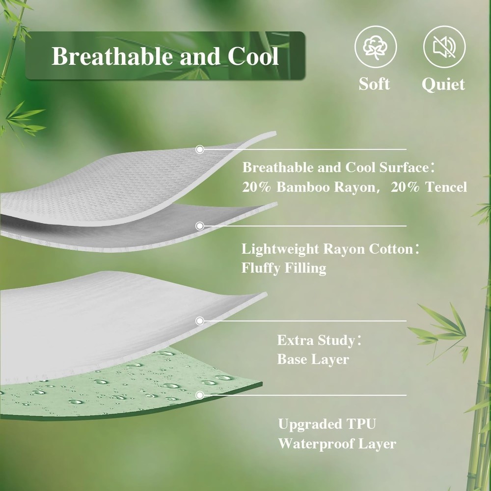 Luxury California King Waterproof Mattress Pad - Breathable & Washable Comfort ‹ › ‹ › ‹ › ‹ › ‹ › ‹ › ‹ › ‹ › ‹ › ‹ › ‹ › Luxury California King Waterproof Mattress Pad Breathable & Washable Comfort Immerse yourself in luxury with our waterproof mattress pad specially designed for a California King bed. Combining functionality with unparalleled comfort, this mattress protector is your ultimate sleep companion. Key Features: 100% Waterproof: Breathable yet utterly waterproof. Shield your mattress from spills, stains, and allergens, ensuring a hygienic sleep environment. Ultra Comfort: A harmonious blend of 20% bamboo rayon and 20% Tencel provides a smooth surface that reduces friction damage against the skin, ensuring skin remains fine and firm. Durable Design: Built to withstand regular washing without losing effectiveness or comfort, thanks to reinforced stitching and resilient fabric. Easy Care: Designed for practical use in everyday life, simply toss it in the washing machine for easy maintenance. Thoughtful Gift: Perfect for new parents, newlyweds, or anyone seeking to enhance their sleep quality, this mattress pad is a considerate choice for any occasion. Excellent Customer Service: Enjoy peace of mind with a 90-day return or replacement guarantee. Why Choose Our Mattress Pad? Say goodbye to uncomfortable nights with our Luxury California King Waterproof Mattress Pad. This exceptional protector not only guards against accidental spills of jams, beverages, and more, but it also enhances the comfort of your mattress through superior materials that breathe seamlessly. Invest in a worry-free sleep solution that combines functionality, durability, and thoughtful gifting, making it an intelligent choice for both yourself and your loved ones. Order now and embrace the luxury of restful sleep! Shipping Free & Fast Shipping - We offer free shipping to most of the USA with a normal delivery time of 3-7 days. However, due to the current situation, additional delivery time (up to 3 weeks) may be required for some items. Alternative Carriers - We may use alternative carriers (e.g. USPS, FedEx, UPS, etc.) to ensure your package arrives safely and on time. Due to the use of multiple carriers, we are unable to provide a tracking number automatically. Handling Time - Orders are processed and shipped within 1-2 business days of receiving cleared payment. Shipping Restrictions - Shipping to Alaska, Hawaii, Puerto Rico, Guam, and other US territories may incur shipping charges or delivery restrictions. Please contact us before ordering, or your order can be refunded/cancelled. State Restrictions - There may be restrictions based on your state of purchase. For example, certain items may not be shipped to California due to state regulations. Contact for Tracking Updates - If you require tracking updates or have any concerns about the delivery of your order, please feel free to contact us, and we will be happy to assist you. Return 30-Day Hassle-Free Returns - We want you to be completely satisfied with your purchase. If you are not, you can return the item within 30 days of receiving it for a full refund or exchange. Easy Return Process - To start a return, simply contact us and we will provide you with a prepaid return shipping label and detailed instructions. Restocking Fee - There are no restocking fees for returns. However, the buyer is responsible for return shipping costs if the return is not due to a seller's error. Refund Processing Time - Refunds will be processed within 5 business days of receiving the returned item in its condition. Payment We accept all major credit cards, PayPal, and Apple Pay for your convenience. Your payment information is secure and encrypted to ensure a safe and seamless transaction. Please complete your payment within 3 days of purchase to avoid any delays in shipping. Feedback Your feedback is extremely important to us. We strive to provide the best products and customer service possible. If you are satisfied with your purchase, please take a moment to leave us a positive review. If you have any concerns or issues with your order, please contact us before leaving negative feedback. We are committed to resolving any problems and ensuring your satisfaction. Contact Us If you have any questions or concerns, please feel free to out to our customer support team. You can contact us through the eBay messaging system. We are available Monday to Friday, 9:00 am to 5:00 pm EST, and we will do our best to respond to your inquiry within 24 hours. Buy it now and enjoy a pleasant shopping experience! Unit Quantity: 3.91 Material: Bamboo,Polyester,Bamboo Rayon,Tencel Features: Cooling,Hypoallergenic,Waterproof,Stain Protection,Washable Care Instructions: Machine Wash Theme: Luxury Department: Adults Room: Bedroom Size: California King Type: Mattress Protector Fill Material: Bamboo Closure Type: No Closure Color: Light Grey Insulation: All Seasons Style: Modern Shape: Rectangular Thread Count: 201-400 GSM (Grams per Square Meter): 301 to 450 Unit Type: lb