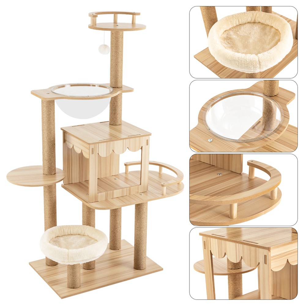 welcome to harebellaf π± Description Cat Tree Tower Choose this wood cat tree tower to bring your cat a comfortable and pleasant place to play and a warm and comfortable place to rest. Whether your kitten wants to stretch out in a spacious cat house, curl up in a plush litter mat, or release the urge to scratch on a twine post, this all-in-one cat tree tower combines style and function to make your fur baby's day fun and exciting! π± Package Included 1* Cat Tree Tower 1* Installation Diagram All Accessories for Assembly π± Key Features Endless Fun: T his cat tree tower has multiple layers of space, including a cat house, a cat nest, a space capsule, and three jumping platforms, which can provide a lot of fun for your cat. A transparent cat bed is more conducive to the interaction between the cat and the owner and the little hanging ball can eliminate their anxiety and discomfort and make them more lively. Multi-level Jumping Platform: A multi-level jumping platform can meet the cat's desire to climb high so that it can play joyfully and increase the flexibility of the cat's body.At the same time, it has a lookout design. As the born nobles, cats enjoy the feeling of being high, so it is very necessary to have a cat climbing frame with a viewing platform. A Win-win Solu t ion: This cat tree tower has its hemp rope pole, and the cat can grind its claws on it so that you can no longer worry about the cat often scratching your furniture, which can achieve a win-win situation. Stable and Durable: This cat tree tower is made of MDF and the diameter of hemp rope pole is 0.24 inches, which can bear 15kg of cats. Thanks to its superior construction and wide, sturdy base, your active baby can jump in and out of this cat climber safely without worrying about tipping over. High-quality and Safe Material : This cat tree tower does not contain formaldehyde, so you don't have to worry about it hurting your pet's health, and you can buy it without any burden. π± Specification Type: Flower Panels Color: Wood Style: Modern Materials: MDF, Flannelette, Hemp Rope, Acrylic Assembly Required: Yes Bearing Weight: 15kg/33.1lbs Gross Weight: 12.3kg/27.1lbs Product Size: 55*40*132cm/21.6*15.7*52in Package size: 62*42*25cm/24.4*16.5*9.8in π± Details Fence design: The viewing platform of this cat tree tower has a fence design, which can prevent cats from falling and hurting, ensure the safety of cats, and make you feel more secure. Comfortable Cushion: Warm and fun cushion, so your cat can have a warm and comfortable resting space after having fun. π± Application This cat tree tower is suitable for cats weighing 33.1 lbs to play and rest in all seasons. π± Notes: Please allow the slight color difference caused by the shooting light and 1-3cm error due to manual measurement and make sure you do not mind before ordering. Before buying, please read the product description and size carefully, it is best to use an effective tool to measure it and confirm before buying. Payment Delivery details Terms of sales About us Contact us Payment We accept ebay payment γ Fees such as import duties, taxes are not included in the item price or shipping costs. These charges are the buyer's responsibility. Delivery details Shipping: 2-9 working days to: USA Terms of sales We maintain high standards of excellence and strive for hundred percent customer satisfaction. Feedback is very important to us. We hope that you contact us immediately before you give neutral or negative feedback, so that we can address your concerns. It is impossible to address issues if we do not know about them! About us Your satis faction is our ultimate goal. We work hard to earn your trust and future business. Our certified technicians have tested each item before shipping. The unit comes with 1 year limited warranty on all manufacturing defects. a) If you receive a defective item, you may return it or ask for a discount. Please contact us within 14 days after you receive the package. b) What you returned must be intact and in its original packaging as re? u. Customer is responsible for shipping costs of the returned item. c) We will cover the cost of shipping back t with the shipping rate indicated in the registration page. We will send you a new unit or refund the full payment you paid. Thank you. Contact us Business Hour Business Hour: Monday To Friday: 8:30 AM to 5:00 PM (Beijing China time) Due to time zones, our reply to your questions may not be immediately. But within above working time, we will reply your email within 24 hours. If it's non-workdays, please kindly be patient and wait till Monday. Please contact us with ebay message. Please feel free to contact us if you have any questions. Monday To Friday: 8:30 AM to 5:00 PM (Beijing China time) Due to time zones, our reply to your questions may not be immediately. But within above working time, we will reply your email within 24 hours. If it's non-workdays, please kindly be patient and wait till Monday. Please contact us with ebay message. Please feel free to contact us if you have any questions. Brand Unbranded Type Cat Climbing Tree Material Flower Panels Height 132cm/60in