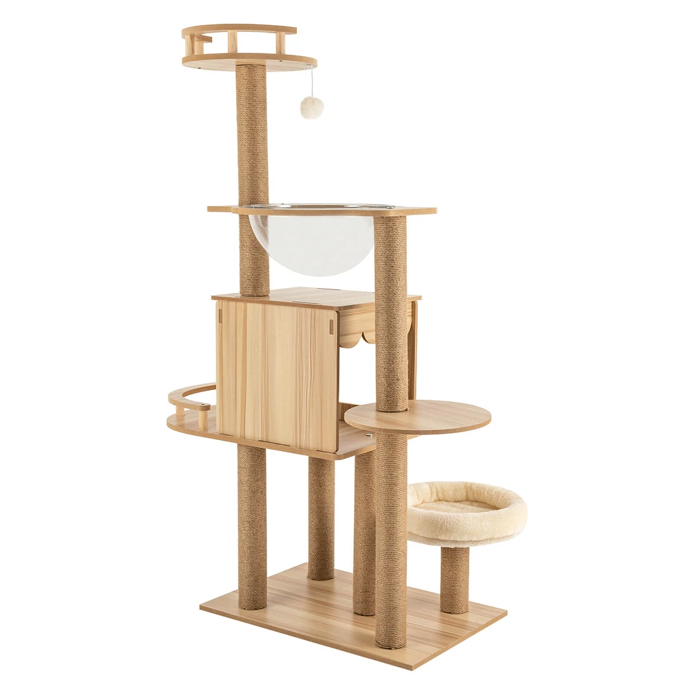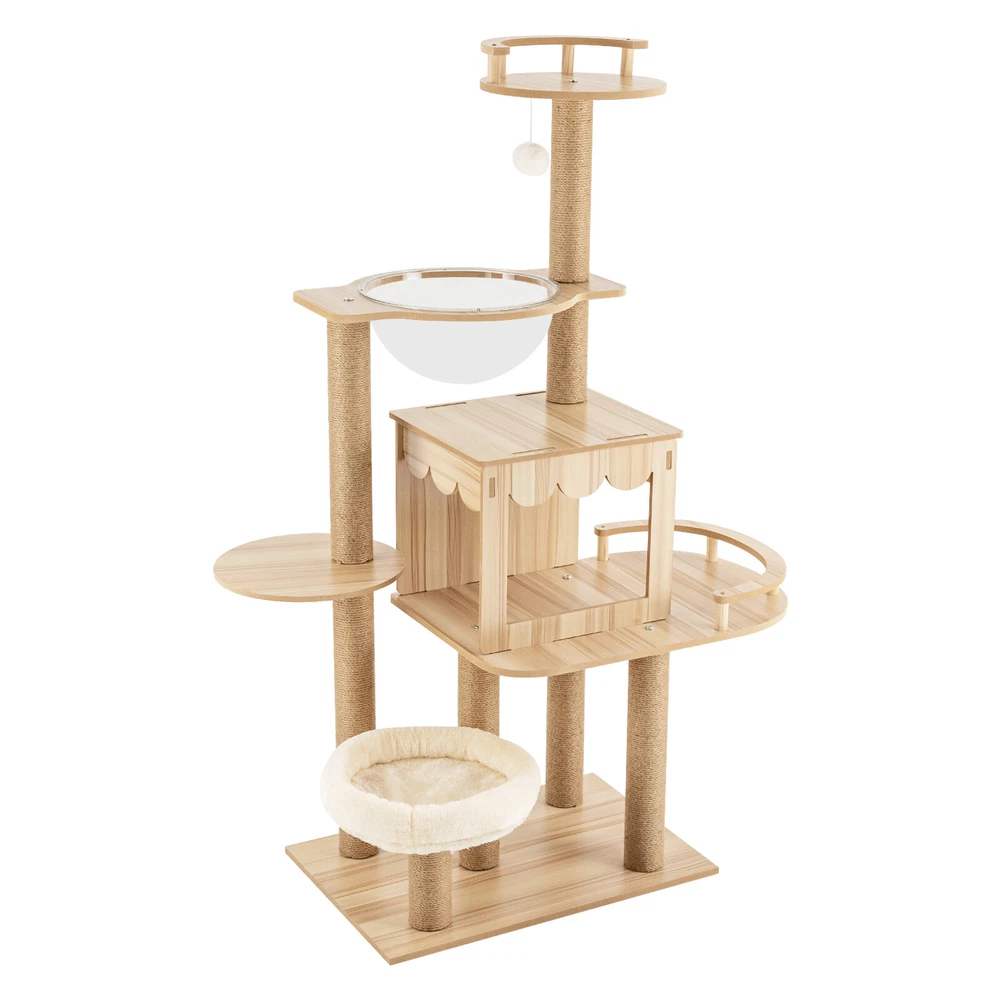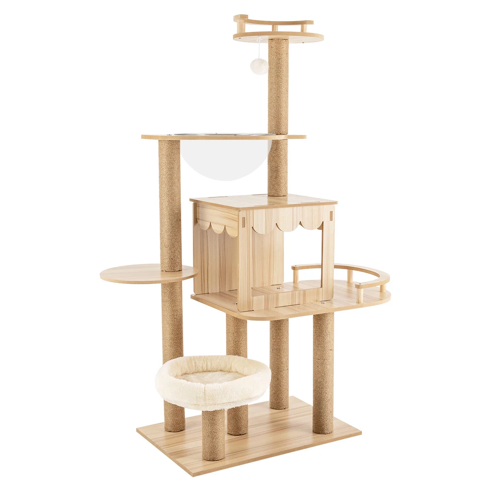 $ 76.835 Tier Modern Wood Cat Tree for Large Cats with Branch Perches