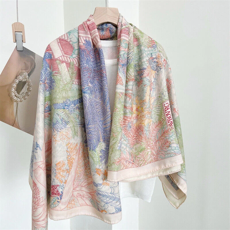 Luxury 70% Cashmere 30% Silk Double-Sided Square Shawl 135cm Wrap Scarf