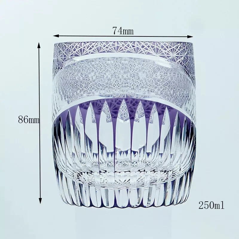 Product Description: Height:40mm TD:55 mm Capacity:250ml/8oz HAND-BLOWN AND HAND-CUTTING: The elaborate geometrically carved glass is admirable by experienced artificers handwork of carving and polishing. Hand-blown glass may have some small bubbles and small black spots, which are characteristic of hand-made. The craftsman made the glass by hand, so they are slightly different one by one. LEAD-FREE CRYSTAL MATERIAL: This kind of glass cup is made from Lead-free Crystal glass, this ultra clear crystal glass body helps to appreciate the color of liquor easier, luxury, gorgeous and exquisite, give your the best whiskey tasting experience. PERFECT LARGE SIZE: The straight line deep cut rock style whiskey glasses holds 12-13 Ounce Fluid, the first choice for every whisky lover. ELEGANT DESIGN: Diamond cut design to aerate and keep the aroma in the glass for optimum nosing. True elegance will always be in style! PERFECT GIFT : Delivered in a stenciled gift box. This elaborate and high quality glass will be your favorite item. Adding for yourself, it will be perfect gift or souvenirs for family, friends, and your work associates! NOT microwave and dishwasher safe. Please use soft cloth or sponge when you wash.
