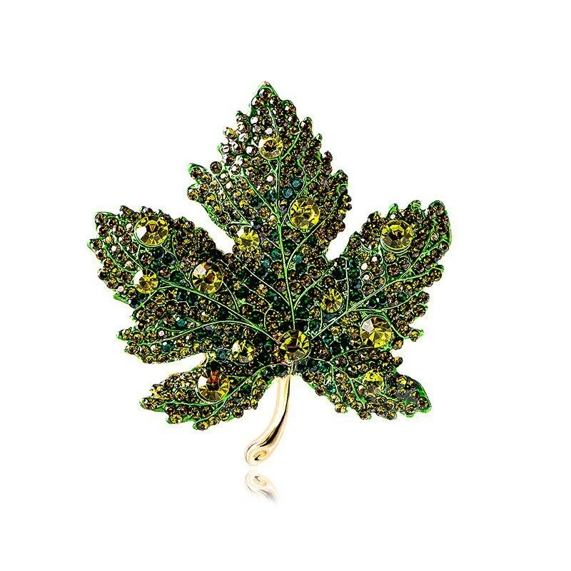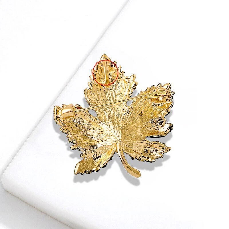 Luxury Full Crystal Shiny Maple Leaf Brooch Pins For Women Girls Vintage Jewelry