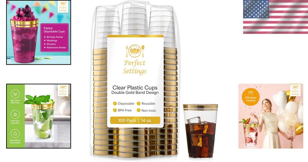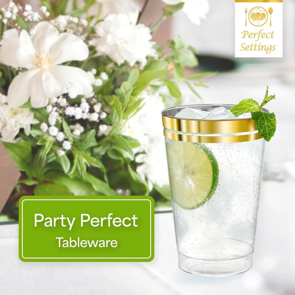 Premium Disposable Gold Trimmed Cups - 100 Count for Effortless Entertaining ‹ › ‹ › ‹ › ‹ › ‹ › ‹ › ‹ › ‹ › ‹ › ‹ › ‹ › Premium Disposable Gold Trimmed Cups - 100 Count for Effortless Entertaining Elevate Your Event: Transform your occasions into sparkling celebrations with our exquisite double gold rimmed clear plastic cups. These elegant 16 oz. cups are designed to hold a standard can of soda, beer, wine, water, or cocktails, making them the ideal choice for any drink! Versatile Party Barware: This bulk 100 pack offers ample supply for all your festive gatherings. Perfect for wedding receptions, bridal showers, anniversaries, birthdays, corporate events, retirement parties, and intimate soirées alike. Hassle-Free Hosting: Say goodbye to fragile and expensive glassware! Our classy heavy-duty cups mimic the look of glass yet are affordable and convenient. Made from BPA-free hard plastic, they withstand normal use and are completely safe for disposal. Skip the Dishes: Your time is invaluable, and the party awaits. Enjoy effortless clean-up with our recyclable, disposable glasses, allowing you to savor the festivities without worrying about washing dishes. A Touch of Class: As a proud woman and veteran-owned small business, we at Perfect Settings Tableware & Party Decorations simplify your hosting experience with durable, sophisticated, and disposable party supplies. Let us enhance your gatherings while making clean-up a breeze! Great for Gifting: Share the elegance! These cups make for an exceptional gift or can be sent ahead for the lucky host of a gathering. Choose our Premium Disposable Gold Trimmed Cups — because every celebration deserves a touch of glamour! Shipping Free & Fast Shipping - We offer free shipping to most of the USA with a normal delivery time of 3-7 days. However, due to the current situation, additional delivery time (up to 3 weeks) may be required for some items. Alternative Carriers - We may use alternative carriers (e.g. USPS, FedEx, UPS, etc.) to ensure your package arrives safely and on time. Due to the use of multiple carriers, we are unable to provide a tracking number automatically. Handling Time - Orders are processed and shipped within 1-2 business days of receiving cleared payment. Shipping Restrictions - Shipping to Alaska, Hawaii, Puerto Rico, Guam, and other US territories may incur shipping charges or delivery restrictions. Please contact us before ordering, or your order can be refunded/cancelled. State Restrictions - There may be restrictions based on your state of purchase. For example, certain items may not be shipped to California due to state regulations. Contact for Tracking Updates - If you require tracking updates or have any concerns about the delivery of your order, please feel free to contact us, and we will be happy to assist you. Return 30-Day Hassle-Free Returns - We want you to be completely satisfied with your purchase. If you are not, you can return the item within 30 days of receiving it for a full refund or exchange. Easy Return Process - To start a return, simply contact us and we will provide you with a prepaid return shipping label and detailed instructions. Restocking Fee - There are no restocking fees for returns. However, the buyer is responsible for return shipping costs if the return is not due to a seller's error. Refund Processing Time - Refunds will be processed within 5 business days of receiving the returned item in its original condition. Payment We accept all major credit cards, PayPal, and Apple Pay for your convenience. Your payment information is secure and encrypted to ensure a safe and seamless transaction. Please complete your payment within 3 days of purchase to avoid any delays in shipping. Feedback Your feedback is extremely important to us. We strive to provide the best products and customer service possible. If you are satisfied with your purchase, please take a moment to leave us a positive review. If you have any concerns or issues with your order, please contact us before leaving negative feedback. We are committed to resolving any problems and ensuring your satisfaction. Contact Us If you have any questions or concerns, please feel free to reach out to our customer support team. You can contact us through the eBay messaging system. We are available Monday to Friday, 9:00 am to 5:00 pm EST, and we will do our best to respond to your inquiry within 24 hours. Buy it now and enjoy a pleasant shopping experience! UPC: Not Set Unit Quantity: 100 Material: Plastic Character: Not Set Features: Disposable,Recyclable Brand: Unbranded Type: Cups Occasion: All Occasions Number of Items: 100 Theme: Holidays, Wedding Color: Clear Character Family: Not Set Production Technique: Not Set MPN: Not Set Pattern: Bordered Department: Adults Country/Region of Manufacture: Not Set Product Line: Not Set Style: Tableware Origin: USA Production Style: Not Set Unit Type: Not Set Vintage: Not Set Antique: Not Set Personalize: Not Set