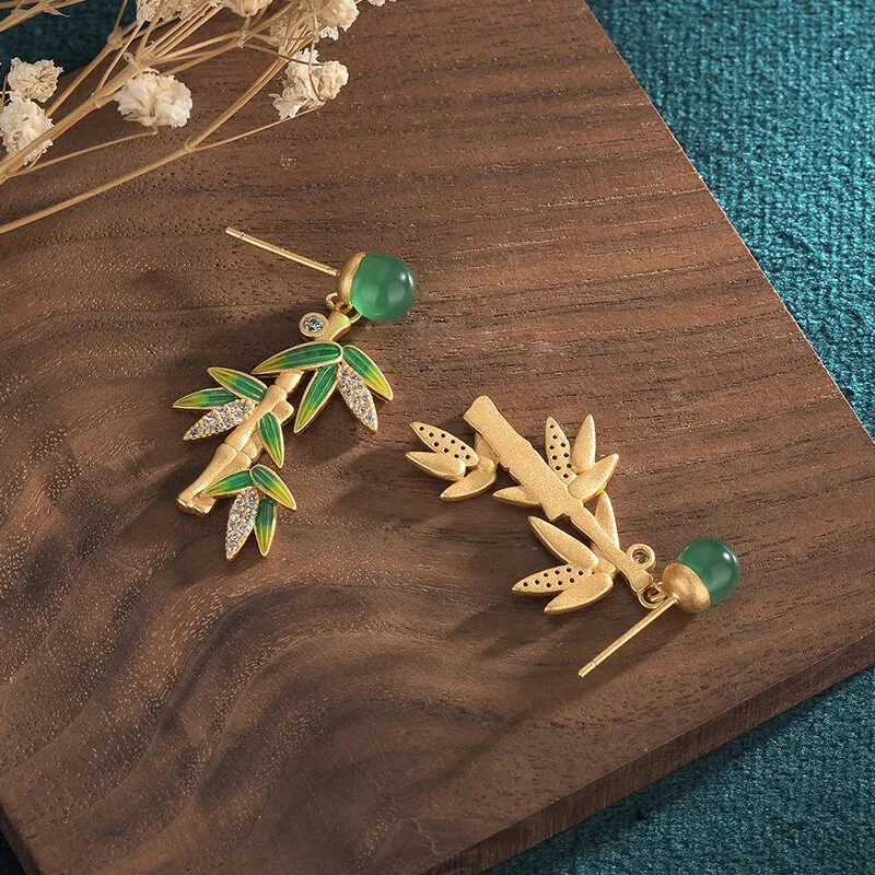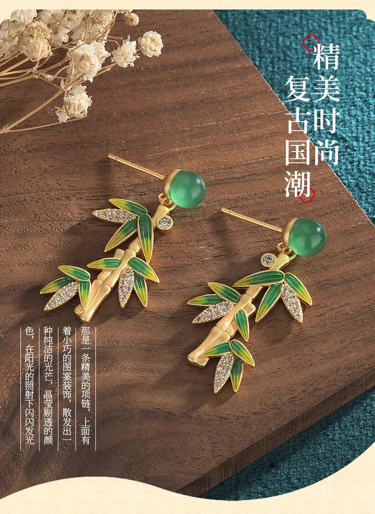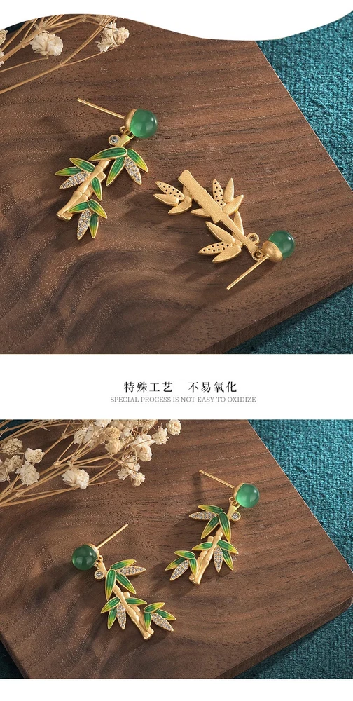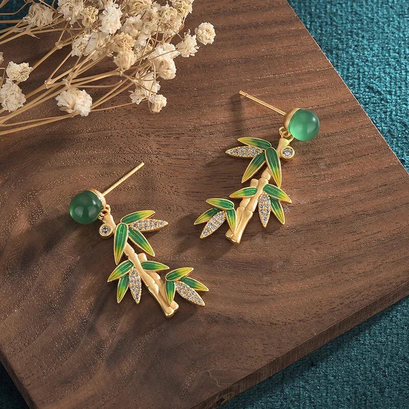 Luxury Green Bamboo Leaf Pendant Tassel Earrings For Women Delicate Fashion