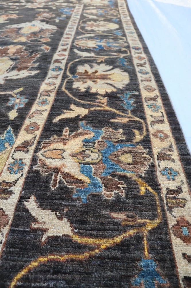 Elevate your space with this exquisite hand-knotted wool carpet, featuring a timeless traditional oriental design. The rich black base is adorned with intricate floral and geometric patterns in shades of blue, beige, and brown, making it a perfect statement piece for any living room, bedroom, or office. Key Features: ✔ Oushak Rug ➤Completely new area rug ➤100% hand-knotted and hand finished ➤Due to the hand-made nature of the rug, size may vary by 2 to 3 inches. Please let me know your requirements in case a specific measurement is required. ➤ Uses the old traditional techniques and designs of the migrated masters of the Orient ➤One of a kind incredible design and color palette ➤ High-Quality Natural Wool ➤ Has a very rich and soft pile ➤ Dyed with natural colors ➤ At no point chemicals, colors, or processes were used in making this rug ➤ Multiple sizes are available, some for immediate delivery and others made-to-order. ➤ Make-to-order rugs take about 30–40 days ➤Free, expedited shipping everywhere ✔ Perfect for Traditional & Modern Interiors Care Instructions: Vacuum regularly to maintain its appearance. Spot clean with a mild detergent or seek professional cleaning for best results. Add sophistication and warmth to your home with this luxurious hand-knotted wool carpet. Fast shipping and secure packaging guaranteed. Feel free to message for additional details or custom inquiries. All Carpets in My Store are Made up of 100% wool, this exquisite hand Knotted rug is durable with a gentle feel. A medium-thick pile in contrasting heights adds delightful decorative complexity, while still maintaining softness & warmness underfoot. The defining details of this rug are sure to make it a conversation piece and an icon of your household. It is a joy to step out of bed in the morning onto these rugs and also perfect for rolling out in a calming nursery or a delightful playroom. Material used:- WOOL AND COTTON PLEASE NOTE:- The images we display have the most accurate color possible. Due to differences in computer monitors, we cannot be responsible for variations in color between the actual product and your screen. Please be advised that in some cases patterns and colors may vary according to size Feedback 1. We depend on our customer satisfaction to succeed. therefore, your feedback is extremely important to us. 2. If you are satisfied with our service, please leave positive feedback to us. thank you! 3. Contact us before leaving any negative or neutral feedback, we will try our best to solve any problems. Terms 1. We will check all the product before shipping to you. 2. If the item is defective, please contact us at once, we will send a solution the first time. 3. Any import charges or fees are the buyer's responsibility. 4. Please check out your ADDRESS carefully when processing an order. 5. Feel free to contact us with any question or query, and any other things like for bulk orders or any custom order we will offer you a satisfying answer. Shipping: All items will ship promptly after payment has cleared Payneer. Please provide the correct and updated address and Contact Number for shipping. Usually takes 5-15 business days for the delivery. Note :- We offer Free Shipping All Across The World. Thanks for Visiting UK HOME FURNISHING
