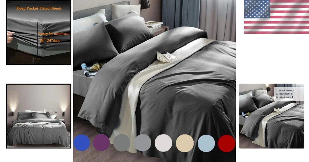 Luxury King Bed Sheet Set - 6-Piece Microfiber, 1800 Thread Count, Dark Grey ‹ › ‹ › ‹ › ‹ › ‹ › ‹ › ‹ › ‹ › ‹ › Luxury King Bed Sheet Set - 6-Piece Microfiber Transform your bedroom into a sanctuary with our exquisite King Size Luxury 6-piece Bed Sheets Set in a sophisticated Dark Grey. Crafted to perfection, these sheets combine elegance, comfort, and practicality to enhance your sleeping experience. Features: Premium Material: Made from 1833 Series Ultra-Soft Double Brushed Microfiber for a silky smooth feel against your skin. Impressive Thread Count: Enjoy the luxury of 1800 thread count for a plush sleeping surface. King Size Dimensions: Includes 1 flat sheet (105"x102"), 1 fitted sheet (78"x80"x21"), and 4 pillowcases (20"x40"). Deep Pocket Design: Fits mattresses up to 24" deep with elastic for a snug fit that won't slip off. Stain Resistant: Our sheets repel stains and resist fading, ensuring they retain their beauty through countless washes. Easy Care: Machine washable and quick-drying, making them a breeze to maintain. No more ironing necessary! Benefits: Experience unparalleled softness for a restful night’s sleep. Upgrade your master suite or guest room with an elegant touch. Designed for comfort without sacrificing style—ideal for any bedroom decor. Durable and long-lasting, ensuring your investment in luxury bedding pays off. Why Choose Our Luxury Bed Sheet Set? Are you ready to indulge in the comfort and style of a hotel-quality bed? Our Luxury King Bed Sheet Set offers not only a beautiful aesthetic with its stunning dark grey hue, but also an exceptional sleeping experience that is free from wrinkles, stains, and hassle. Enjoy a sophisticated look while relaxing in the embrace of ultra-soft microfiber that caresses your body. Perfect for those who refuse to settle for less, these sheets are designed for a flawless fit, whisper-soft comfort, and easy maintenance. Elevate your bedroom today and experience the luxury you deserve! Shipping Free & Fast Shipping - We offer free shipping to most of the USA with a normal delivery time of 3-7 days. However, due to the current situation, additional delivery time (up to 3 weeks) may be required for some items. Alternative Carriers - We may use alternative carriers (e.g. USPS, FedEx, UPS, etc.) to ensure your package arrives safely and on time. Due to the use of multiple carriers, we are unable to provide a tracking number automatically. Handling Time - Orders are processed and shipped within 1-2 business days of receiving cleared payment. Shipping Restrictions - Shipping to Alaska, Hawaii, Puerto Rico, Guam, and other US territories may incur shipping charges or delivery restrictions. Please contact us before ordering, or your order can be refunded/cancelled. State Restrictions - There may be restrictions based on your state of purchase. For example, certain items may not be shipped to California due to state regulations. Contact for Tracking Updates - If you require tracking updates or have any concerns about the delivery of your order, please feel free to contact us, and we will be happy to assist you. Return Please see our eBay Return Policy. Thank you. Payment We accept all major credit cards, PayPal, and Apple Pay for your convenience. Your payment information is secure and encrypted to ensure a safe and seamless transaction. Please complete your payment within 3 days of purchase to avoid any delays in shipping. Feedback Your feedback is extremely important to us. We strive to provide the best products and customer service possible. If you are satisfied with your purchase, please take a moment to leave us a positive review. If you have any concerns or issues with your order, please contact us before leaving negative feedback. We are committed to resolving any problems and ensuring your satisfaction. Contact Us If you have any questions or concerns, please feel free to reach out to our customer support team. You can contact us through the eBay messaging system. We are available Monday to Friday, 9:00 am to 5:00 pm EST, and we will do our best to respond to your inquiry within 24 hours. Thank you for supporting our small family business! UPC: Not Set Item Length: Not Set Item Width: Not Set Unit Quantity: 1 Material: Microfiber Character: Darkness Theme: Luxury Care Instructions: Machine Wash Features: Deep Fitted,Deep Pocket,Shrinking Resistant,Stain Resistant,Wrinkle Resistant Department: Adults Room: Bedroom Labels & Certifications: Not Set Brand: Unbranded Size: King Type: Sheet Set Color: Dark Grey Pattern: Solid Character Family: Not Set MPN: Not Set Country/Region of Manufacture: Not Set Thread Count: 1800 Style: Modern Shape: Rectangular Model: Not Set GSM (Grams per Square Meter): Over 800 Product Line: Not Set Unit Type: Unit