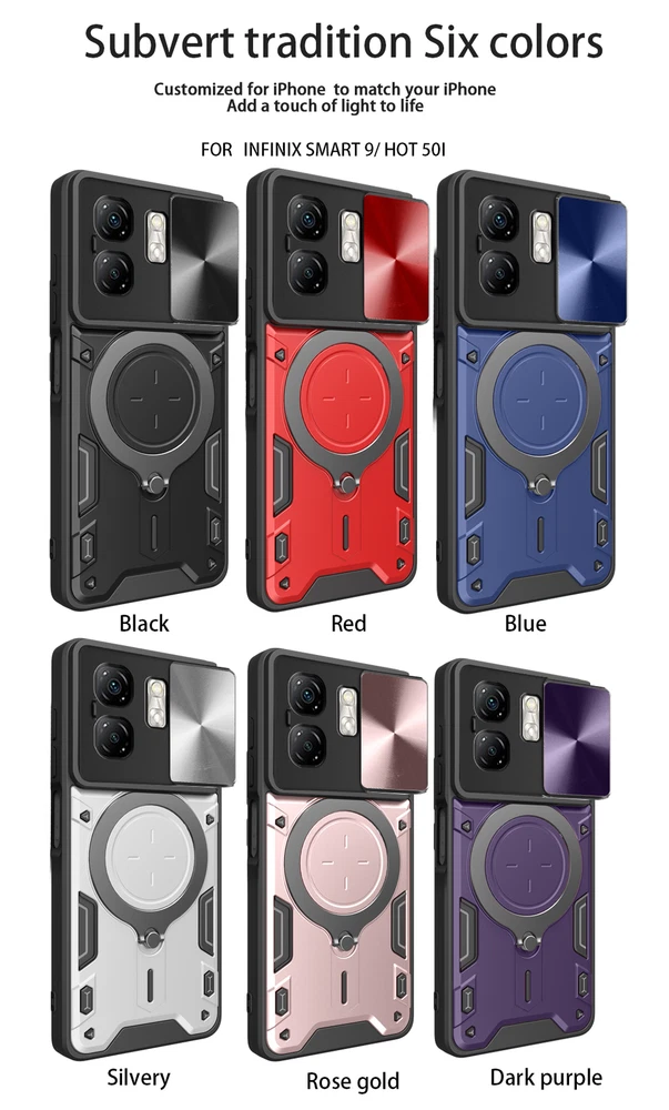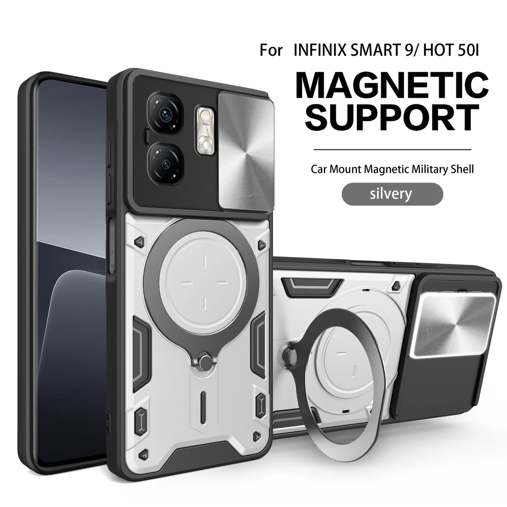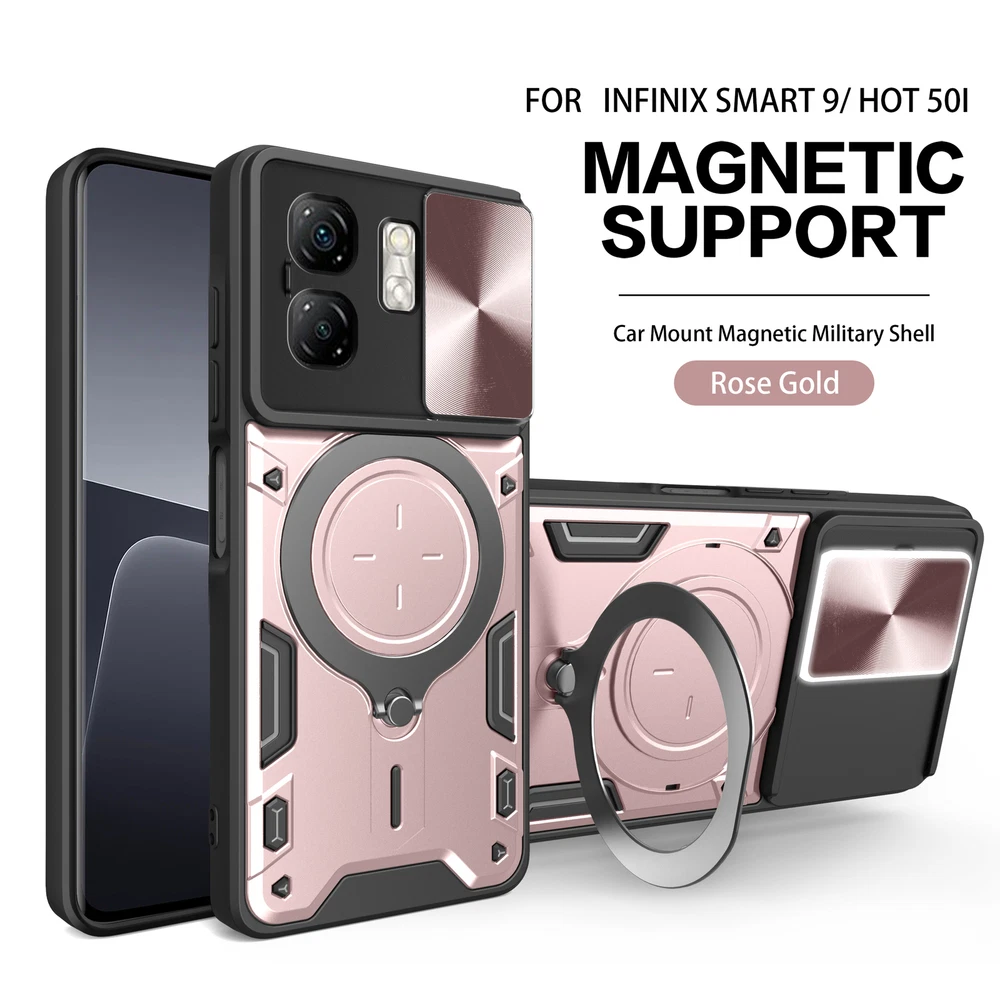 Magnetic Luxury Slide Lens Cover Case for Infinix Smart 9 with Camera Support