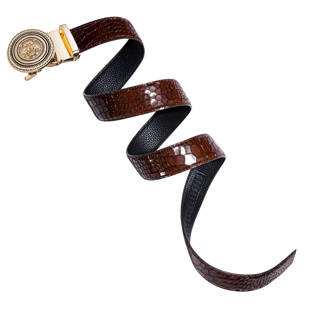 HomeLuxury Men's Gold Tiger Automatic Buckle Belt Ratchet Leather Strap