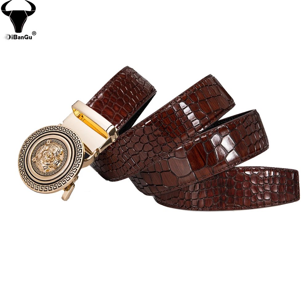Luxury Men's Gold Tiger Automatic Buckle Belt Ratchet Leather Strap